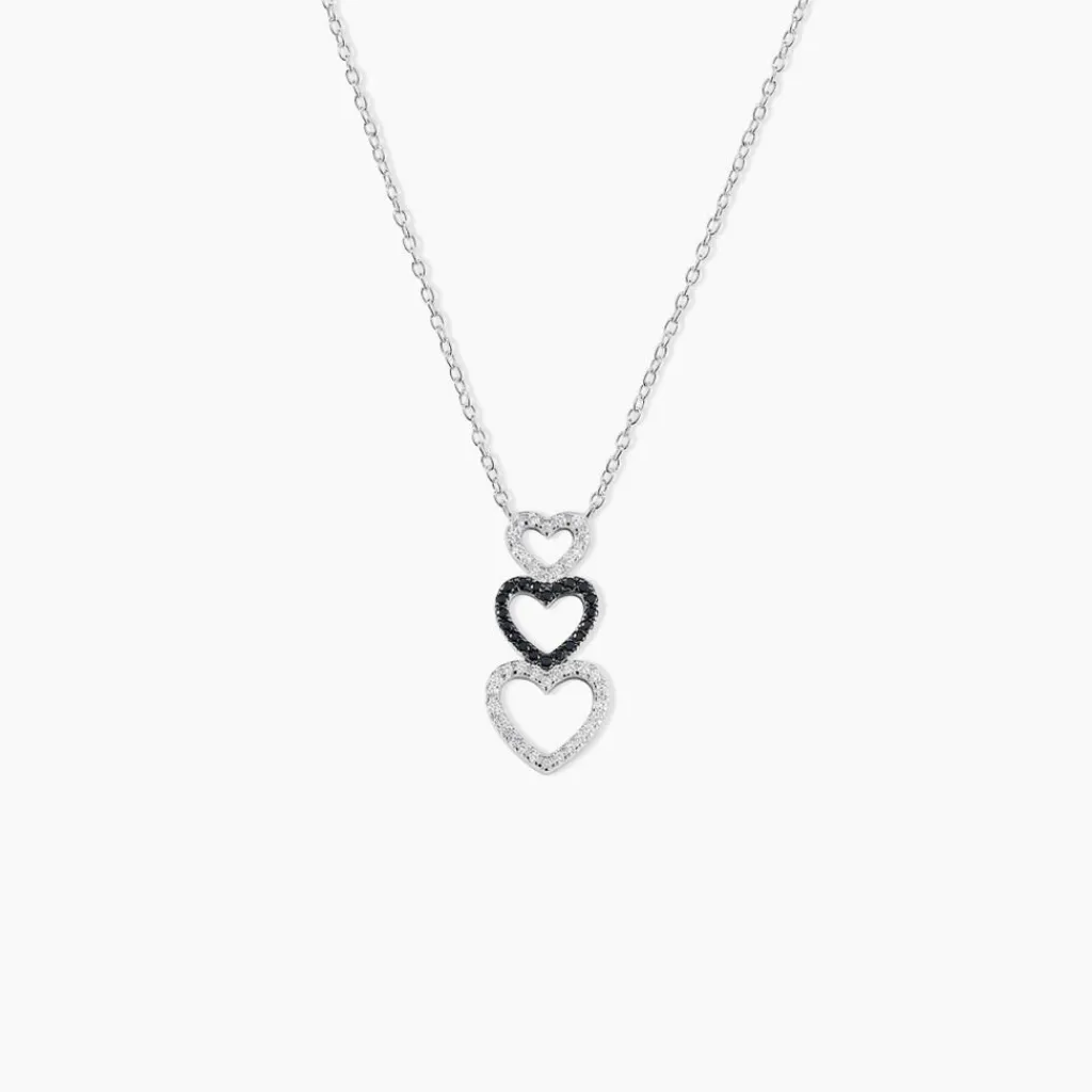 Collier Argent 925/1000 lio Triple C艙urs Ajoures Paves Oxydes De Zirconium Noirs Et Blancs 45cm