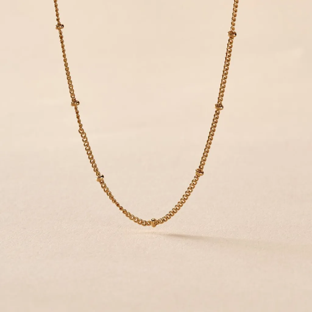 Collier Plaque Or Jaune Chaine Boules 42cm