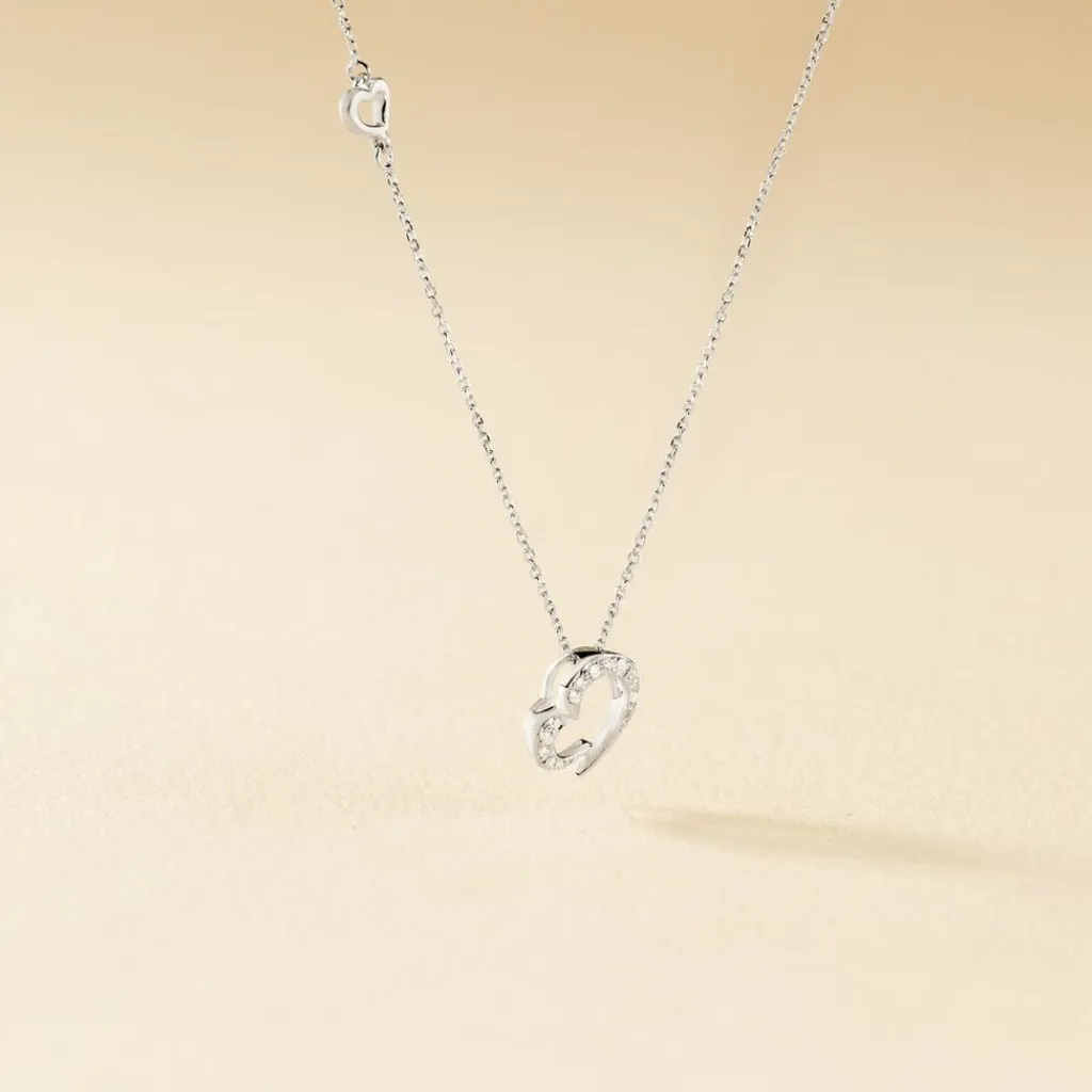 Collier Or Blanc 375/1000 Maille Jaseron C艙ur Diamants Pm 42cm