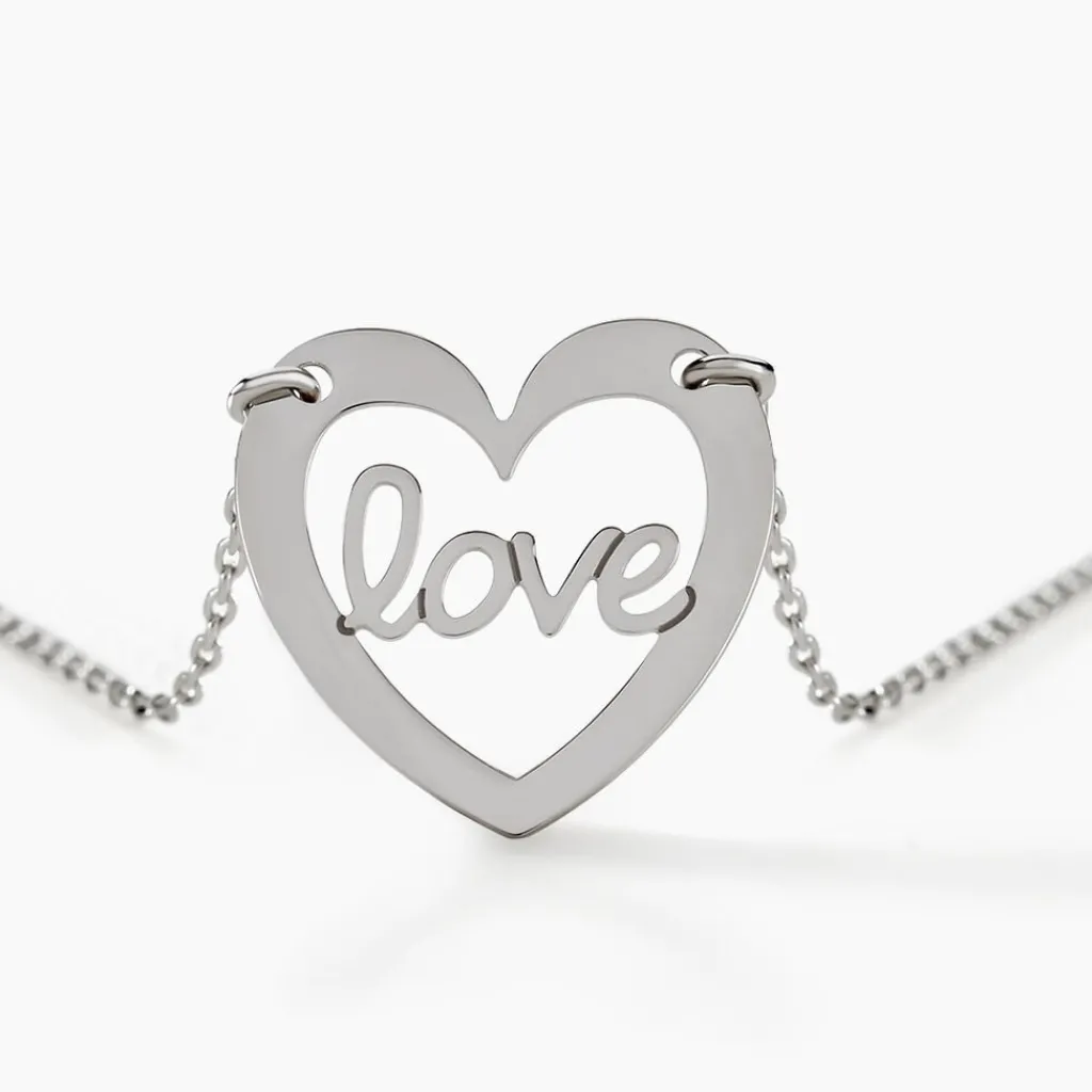 Collier Argent 925/1000 Forme C艙ur Ajoure Message Love 42cm