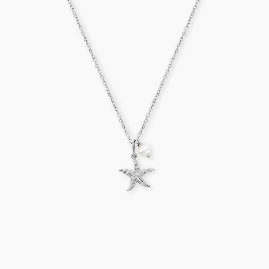 Collier Argent Blanc 925/1000 étoile De Mer Et Boule Blanche Maille Forçat 42+3cm