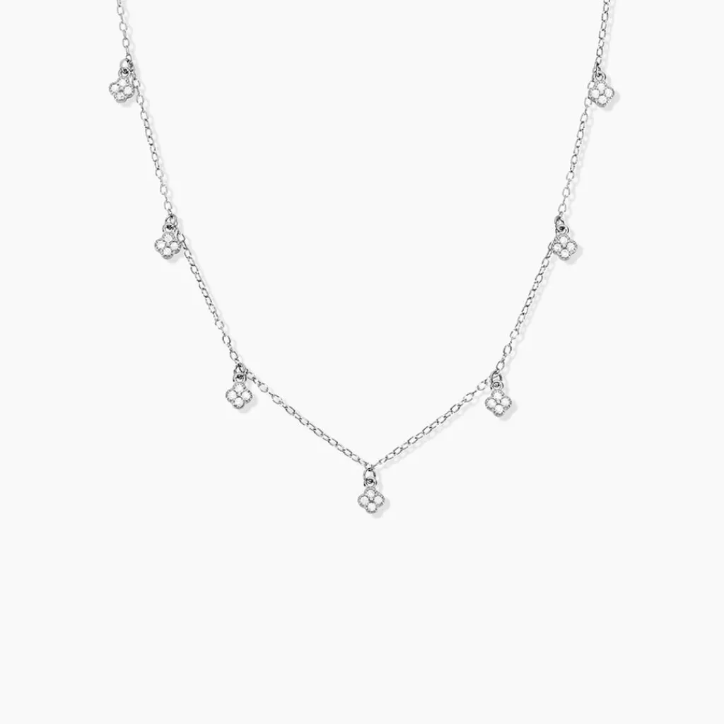 Collier Argent Blanc 925/1000 Pampilles Fleurs Oxydes De Zirconium Serti Clos Maille Forcat 42+3Cm