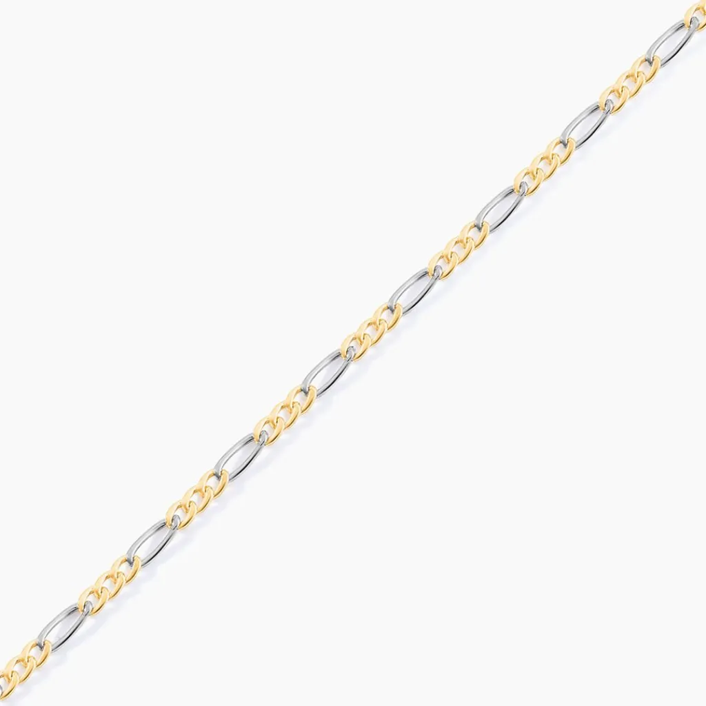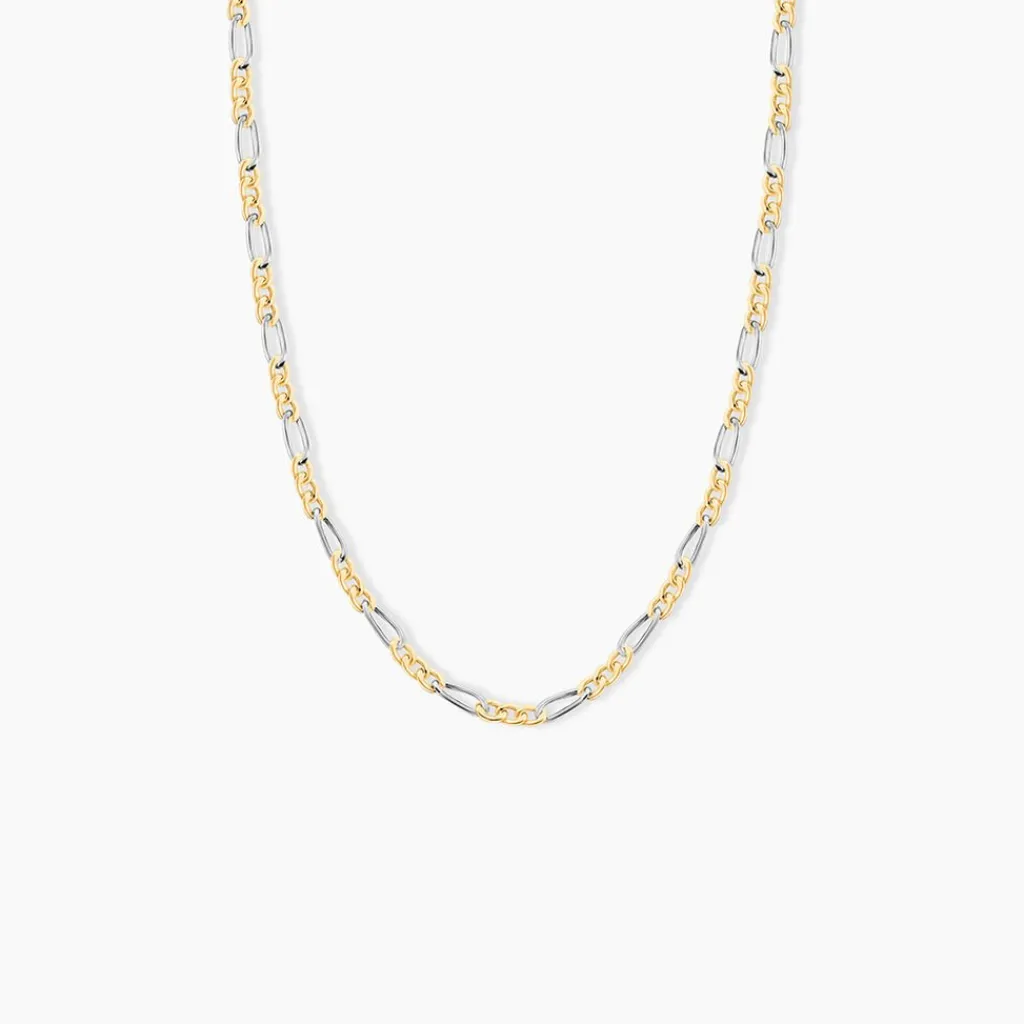 Collier Maille Or Bicolore Jaune Et Blanc 750/1000 Maille Alternee 1/3 Largeur 2.2mm 50cm