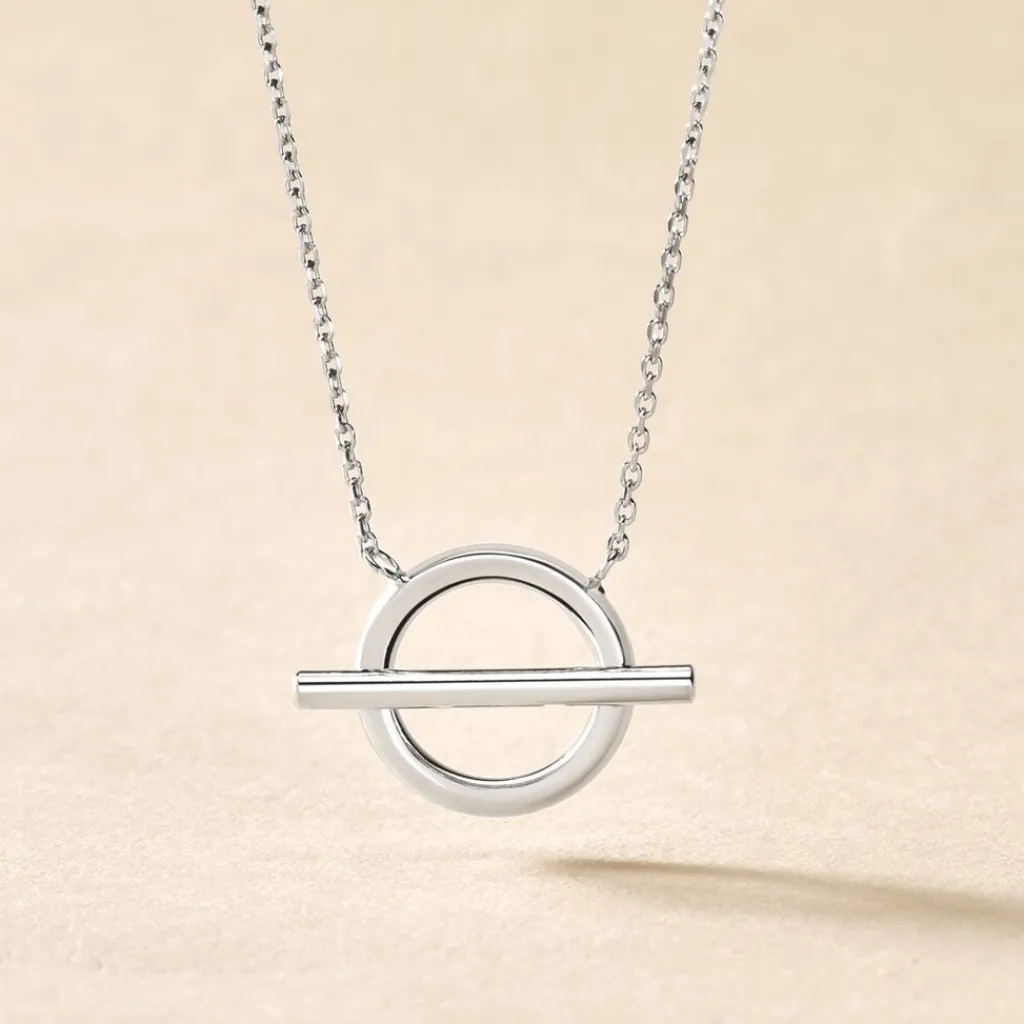 Collier Argent Blanc 925/1000 Cercle Ajoure Barrette Horizontale Maille Forcat 44.5cm