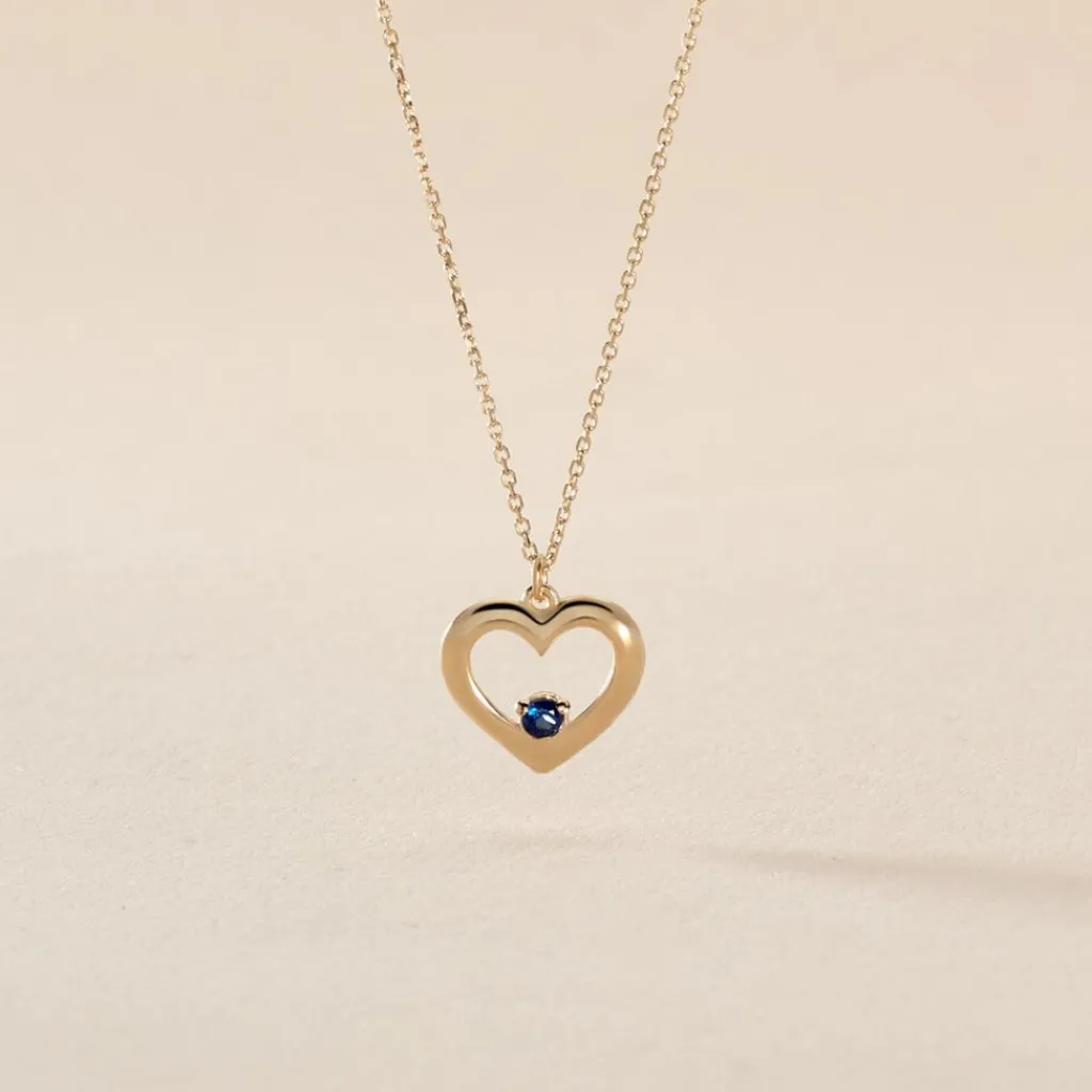 Collier Or Jaune 375/1000 C艙ur Et Saphir 42cm