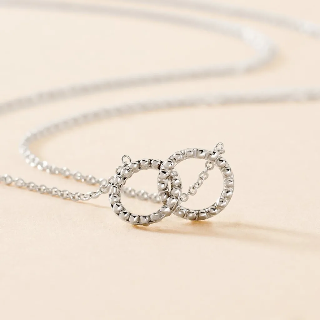 Collier Argent Blanc 925/1000 Cercles Entrelacés Effet Perlé Maille Forçat 42+3cm