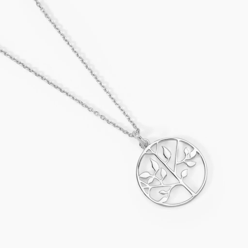 Collier Argent Blanc 925/1000 Arbre De Vie Maille Forcat 45cm