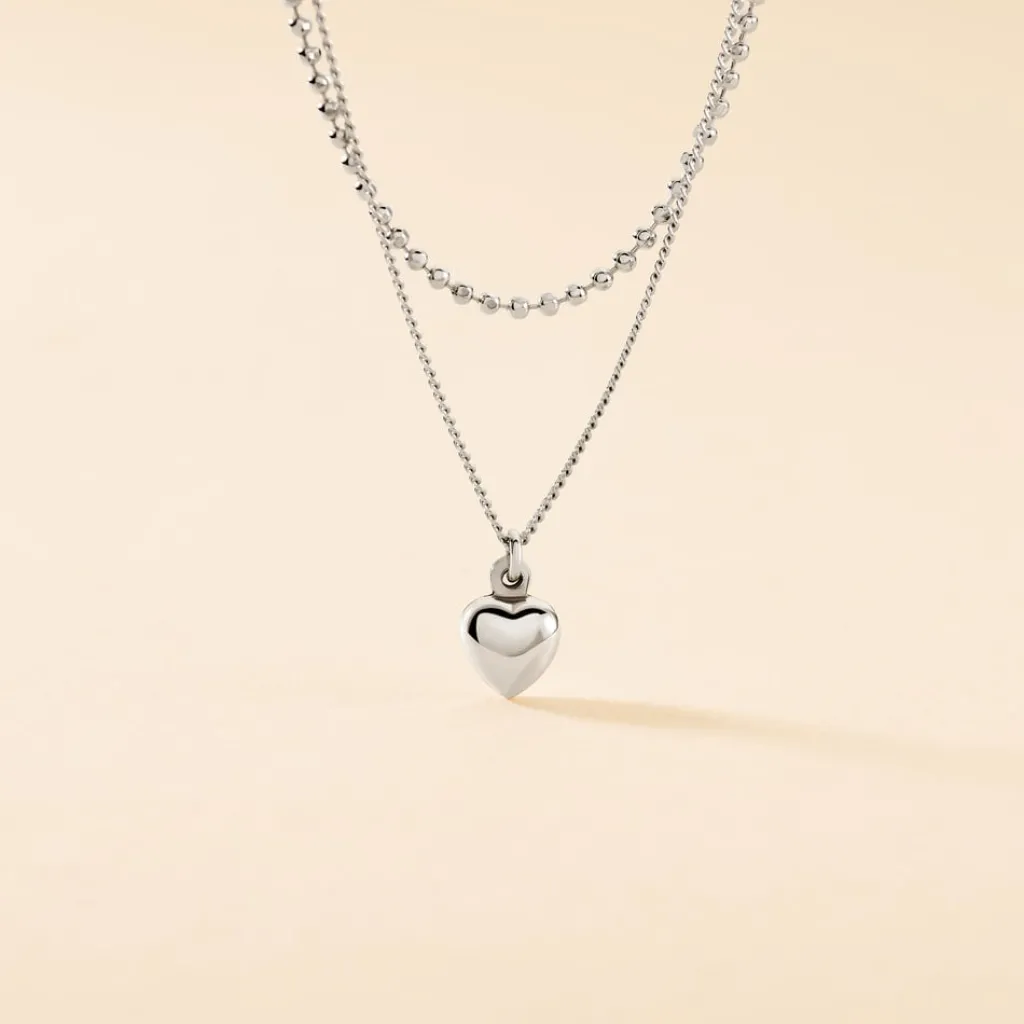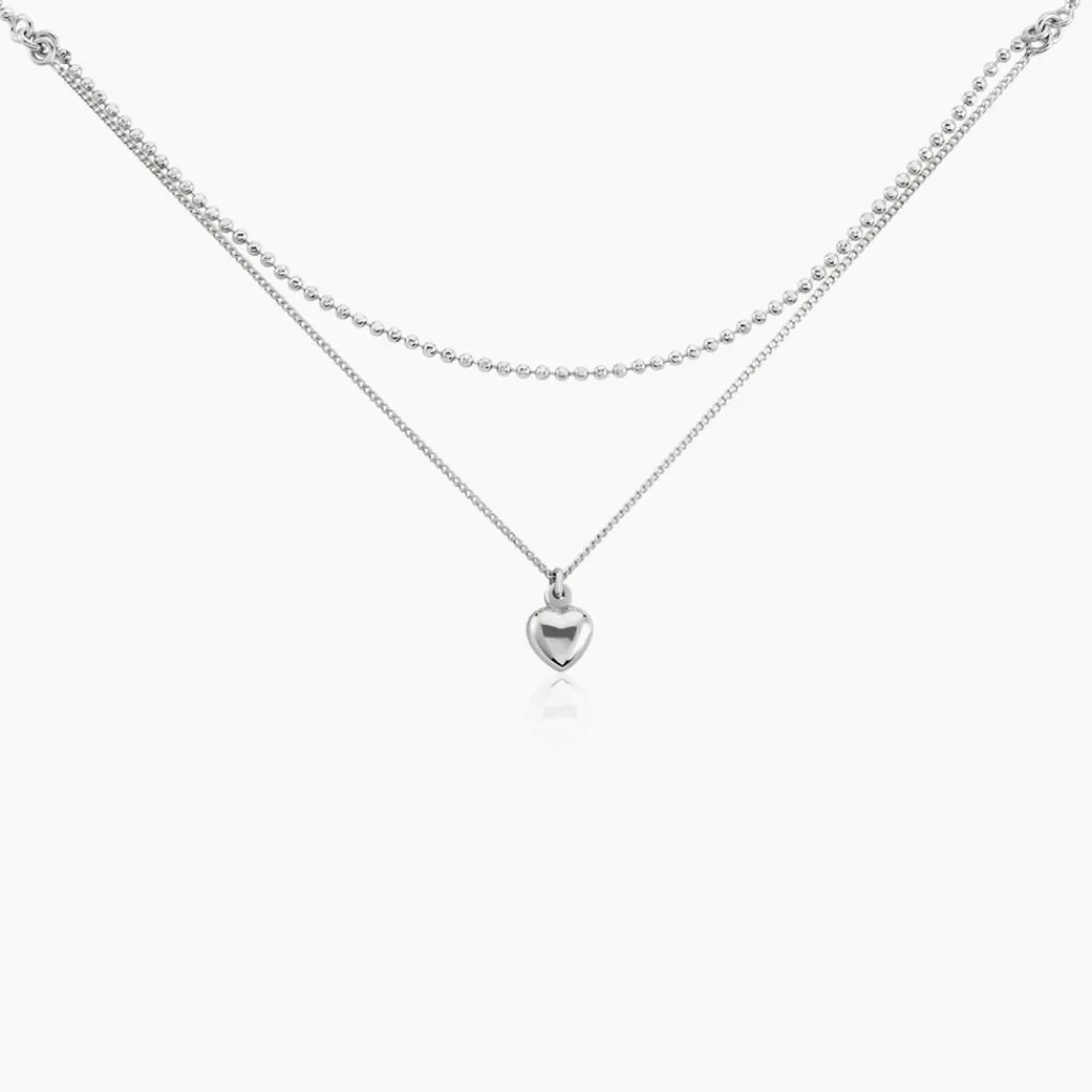Collier Argent Blanc 925/1000 Coeur Double Maille Forçat Et Gourmette 36+3cm