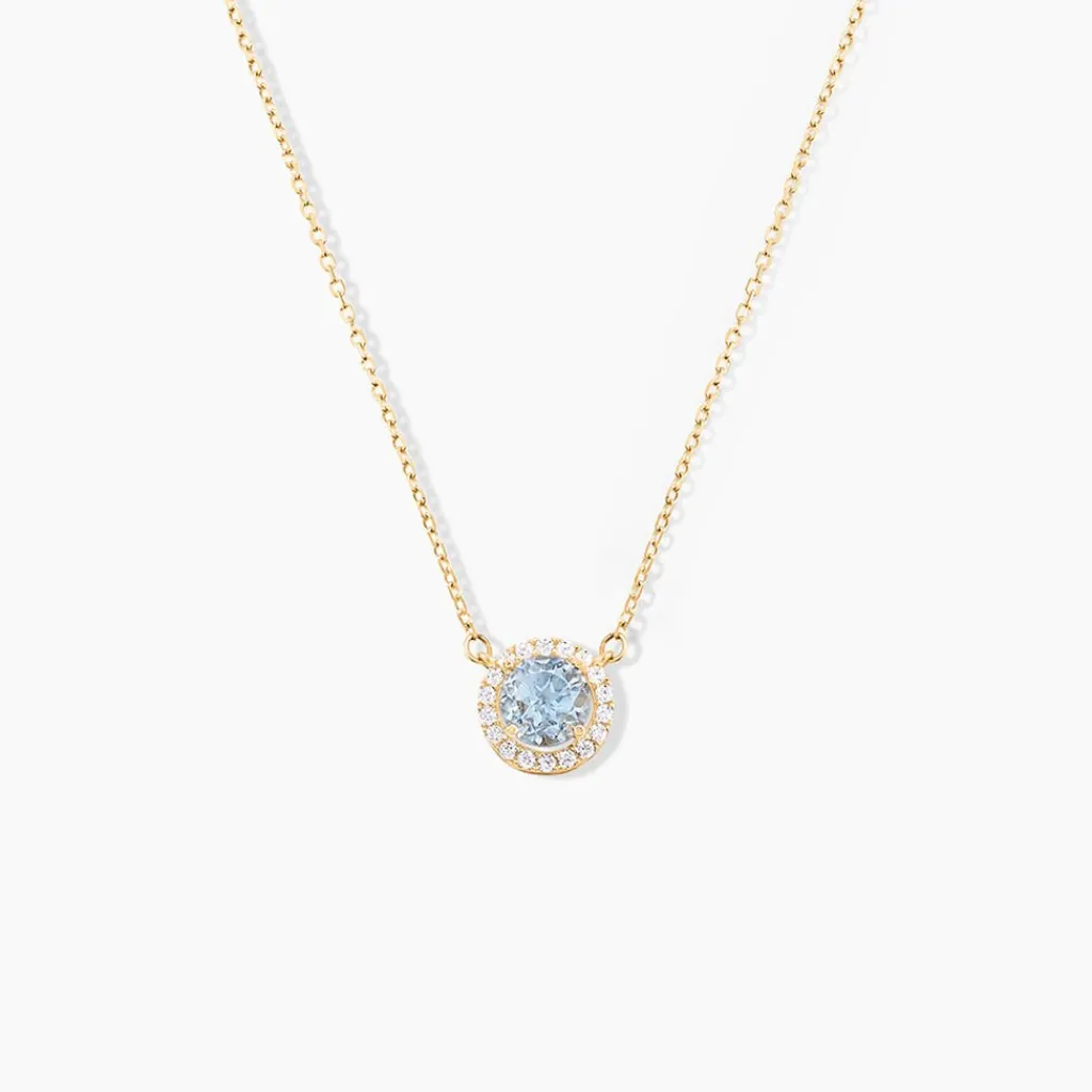 Collier Or Jaune 375/1000 Solitaire Topaze Sky 0,4Cts Serti 4 Griffes Entourage Oxyde De Zirconium Maille Forcat 40+2Cm