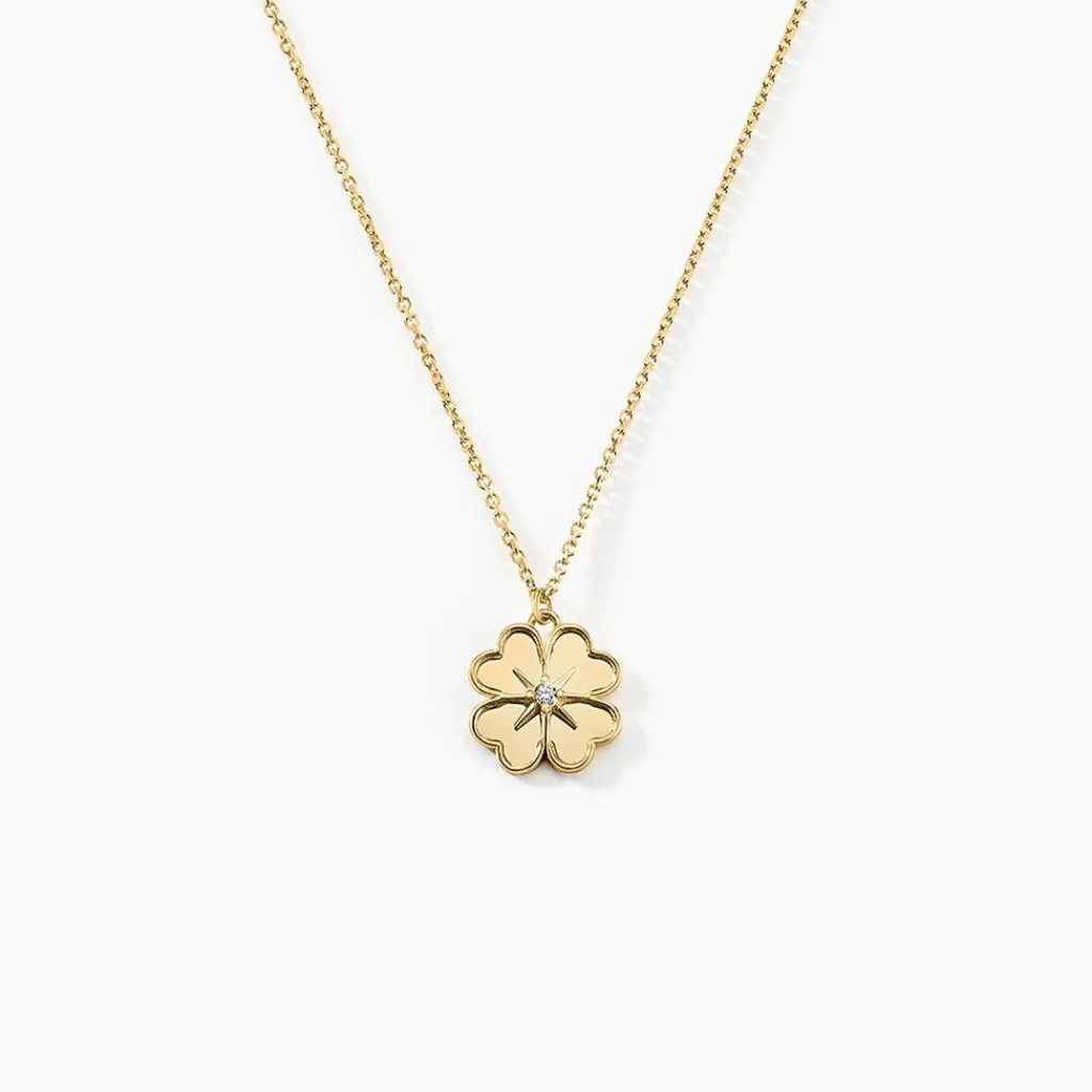 Collier Or Jaune 375/1000 Fleur De Trefle 1 Oxyde De Zirconium Serti 4 Griffes Maille Jaseron 40+2cm