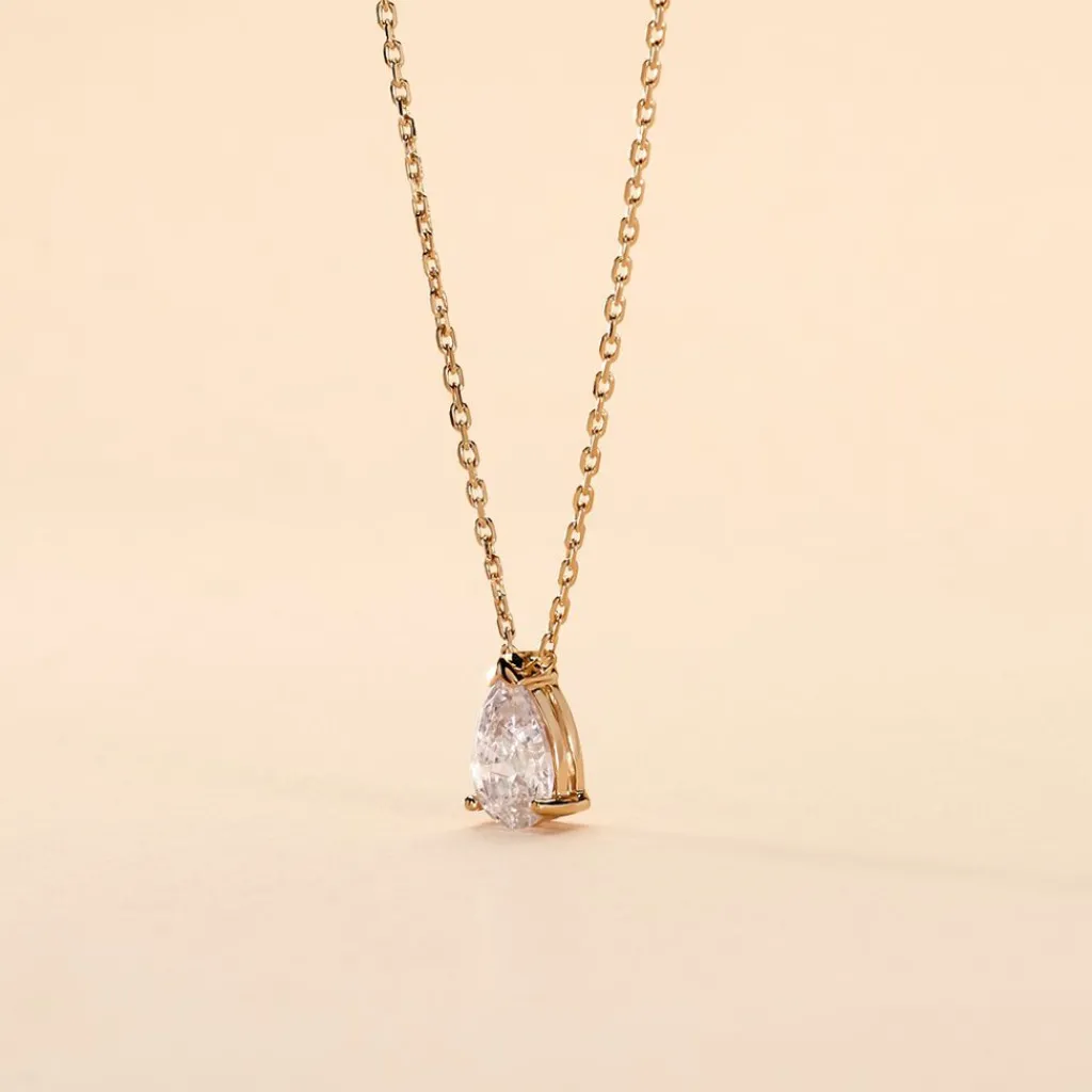 Collier Plaque Or Jaune 1 Oxyde De Zirconium Poire Serti 3 Griffes 45cm