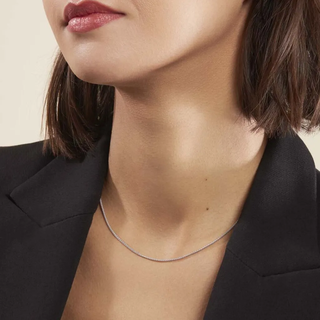 Chaîne Argent Blanc 925/1000 Maille Pop Corn Largeur 1.2mm 42cm