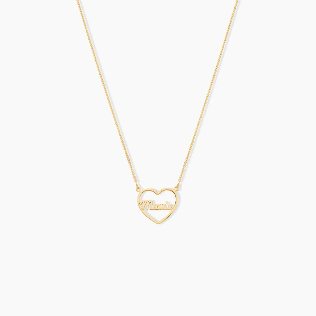 Collier Or Jaune 375/1000 C艙ur Ajoure Message Mamie Maille Jaseron 40+2cm