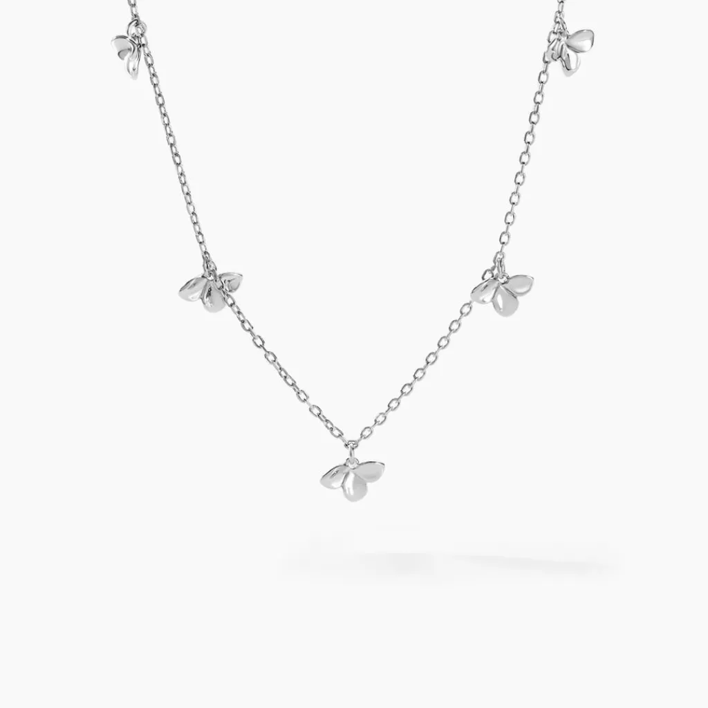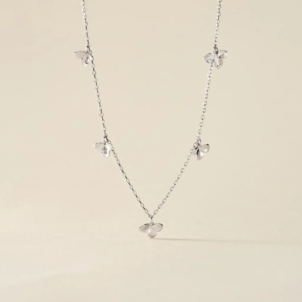 Collier Argent Blanc 925/1000 Pampilles Fleurs Maille Forcat 42+3cm