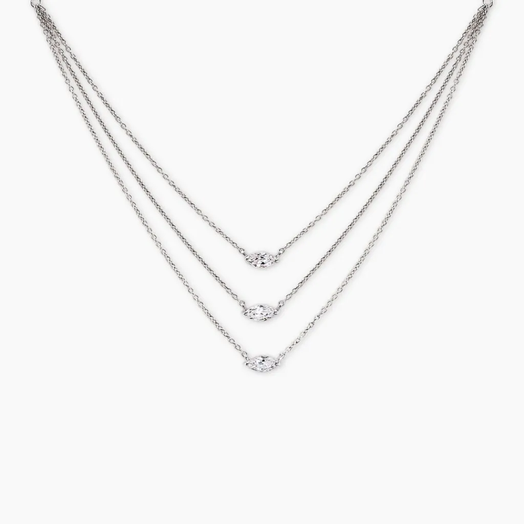 Collier Argent Blanc 925/1000 Oxydes De Zirconium S 3 Rangs Maille Forçat 38+3cm