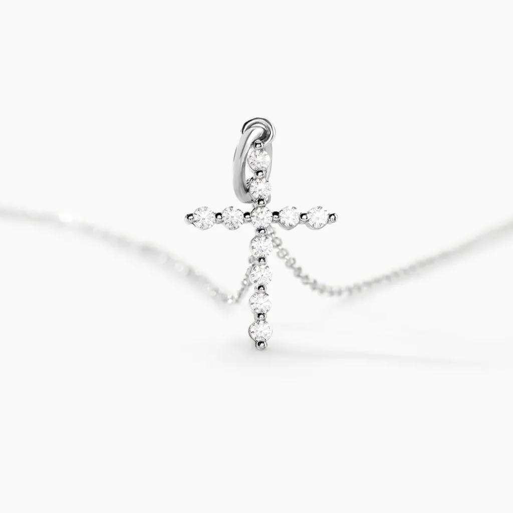 Collier Argent 925/1000 norine Avec Pendentif Croix Oxydes De Zirconium Maille Forcat 42cm
