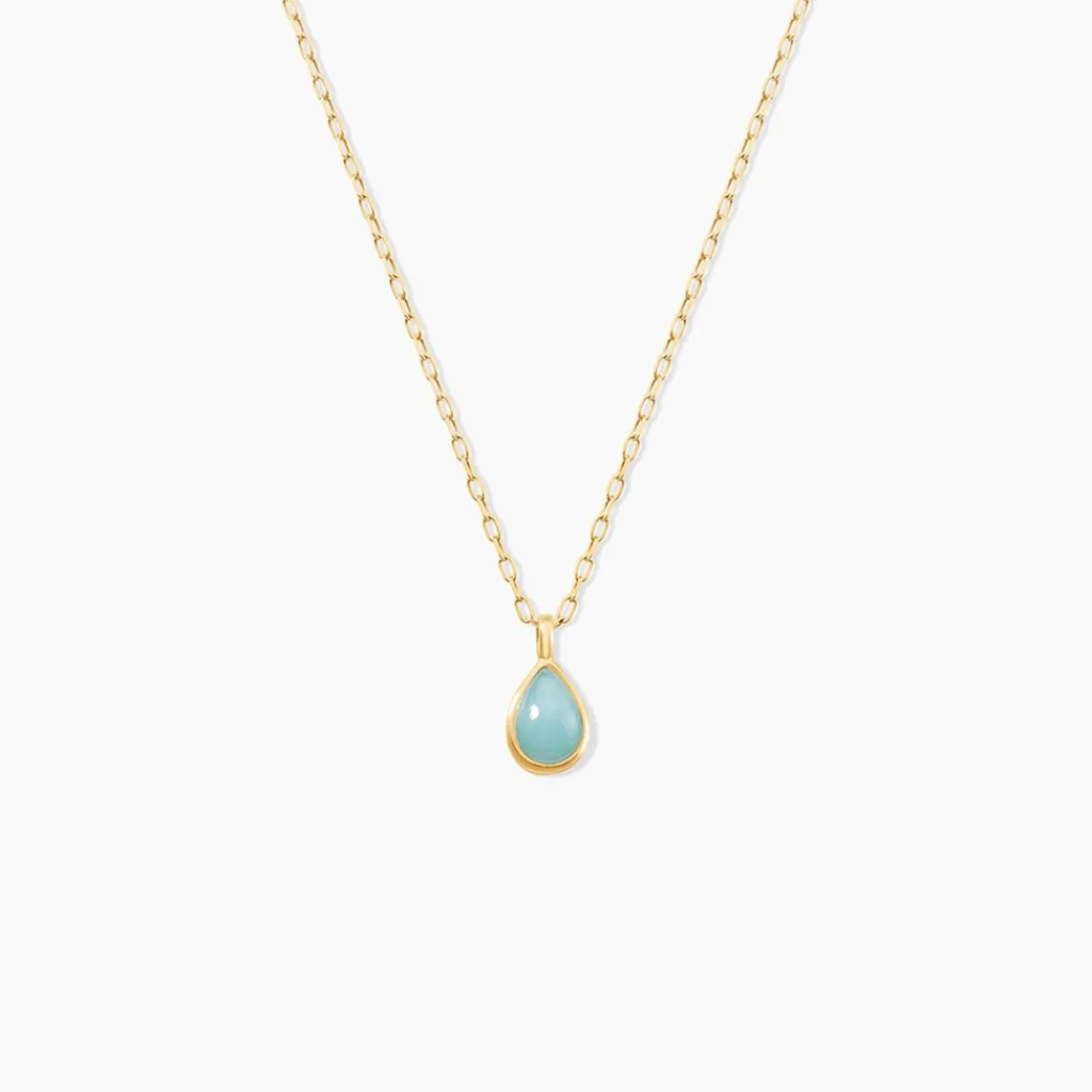 Collier Or Jaune 375/1000 Goutte Amazonite Turquoise Maille Forcat 40+2Cm