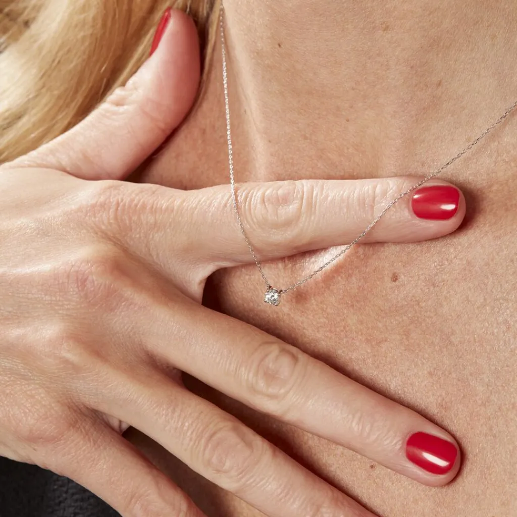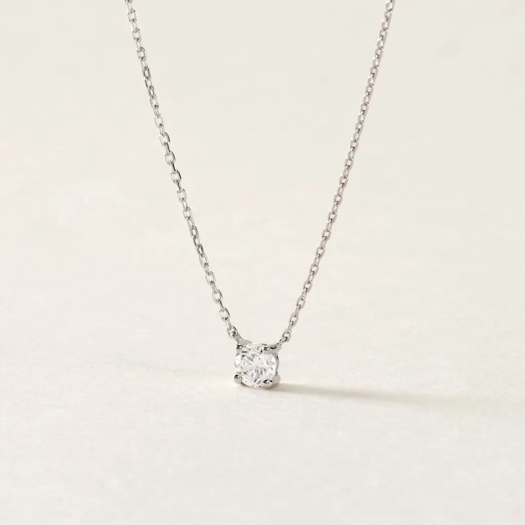 Collier Or Blanc 375/1000 Solitaire Diamant 0.25cts Serti 4 Griffes Maille Forçat 40+2cm
