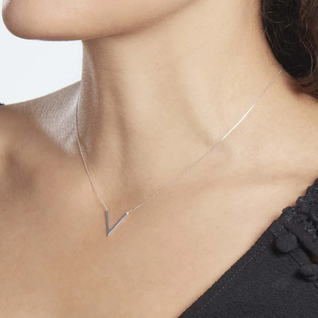 Collier Or Blanc 375/1000 Forme V Gm Maille Forcat 40+2cm