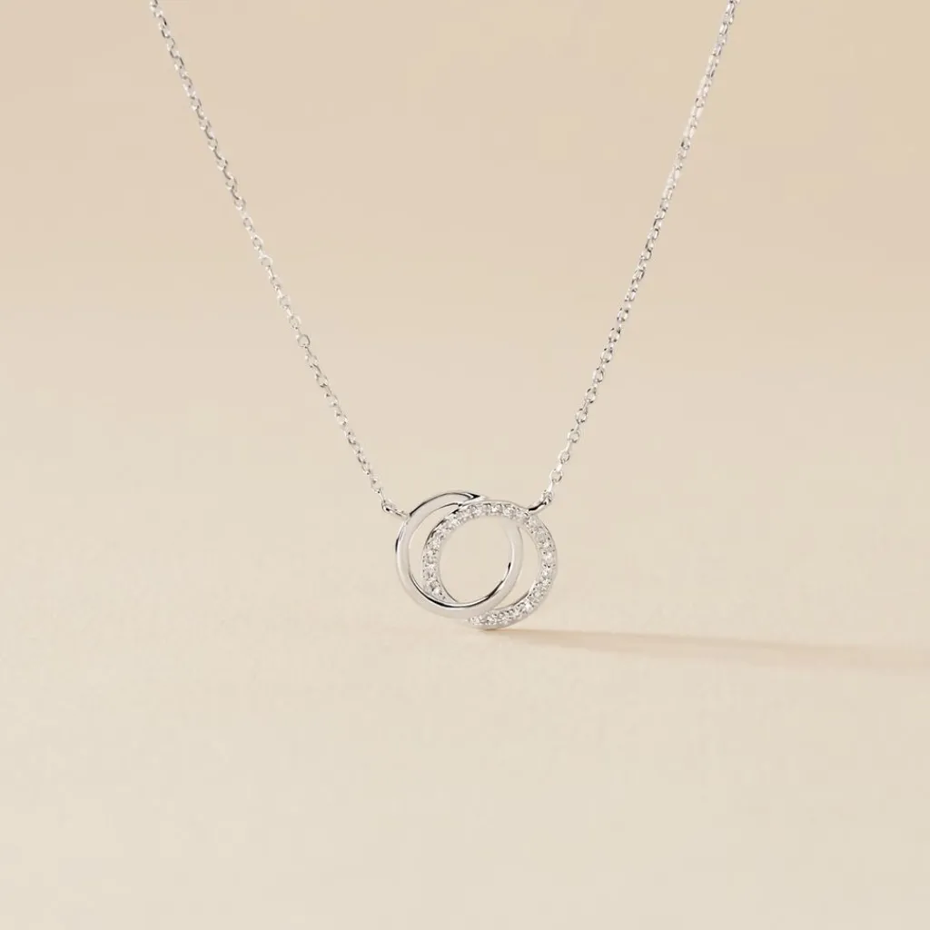 Collier Or Blanc 375/1000 Forme Cercles Entrelaces Diamants