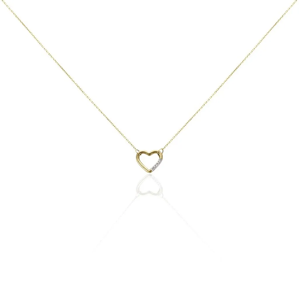 Collier Or Jaune 375/1000 Motif C艙ur Ajoure Diamants Maille Forcat 40+2cm