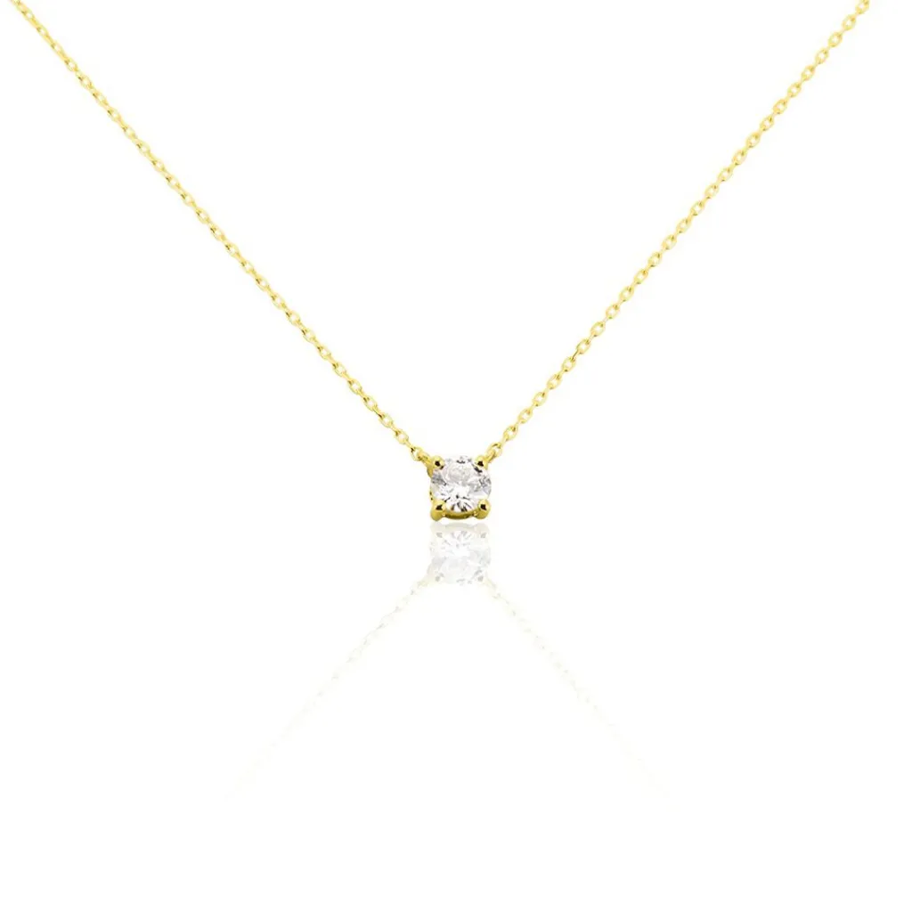 Collier Or Jaune 375/1000 Solitaire Diamant 0.34cts Serti 4 Griffes Maille Forçat 40+2cm