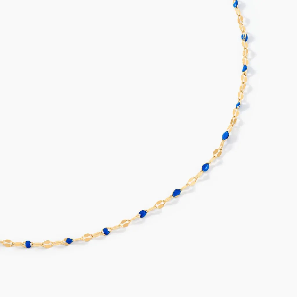 Collier Or Jaune 375/1000 Email Bleu Maille Lumina 40+2cm