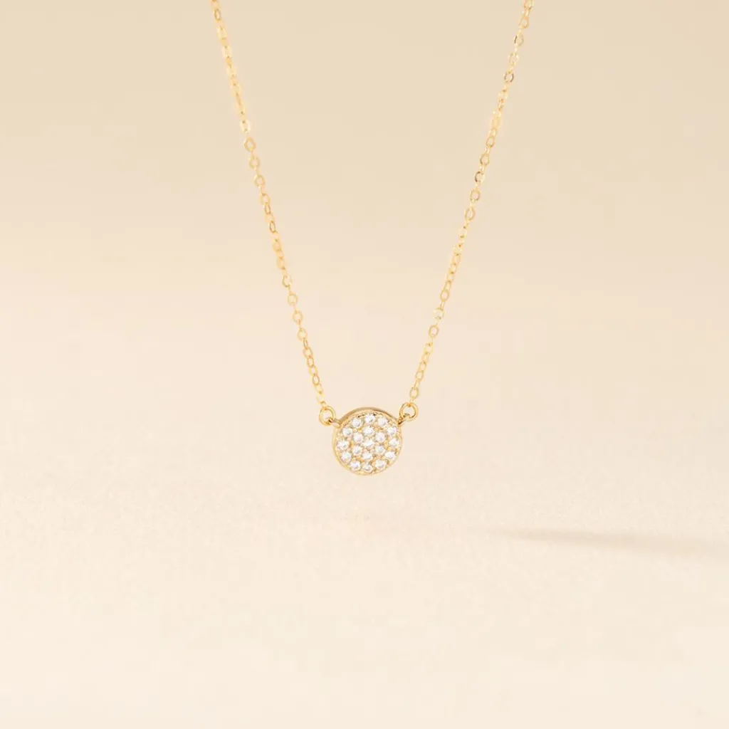 Collier Or Jaune 375/1000 Pastille Ronde Oxyde De Zirconium Maille Forçat 42cm