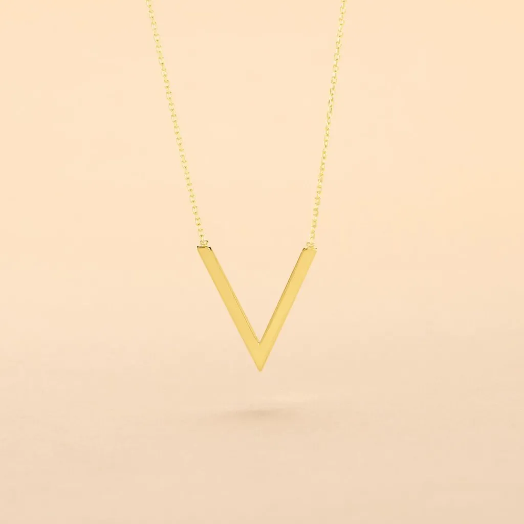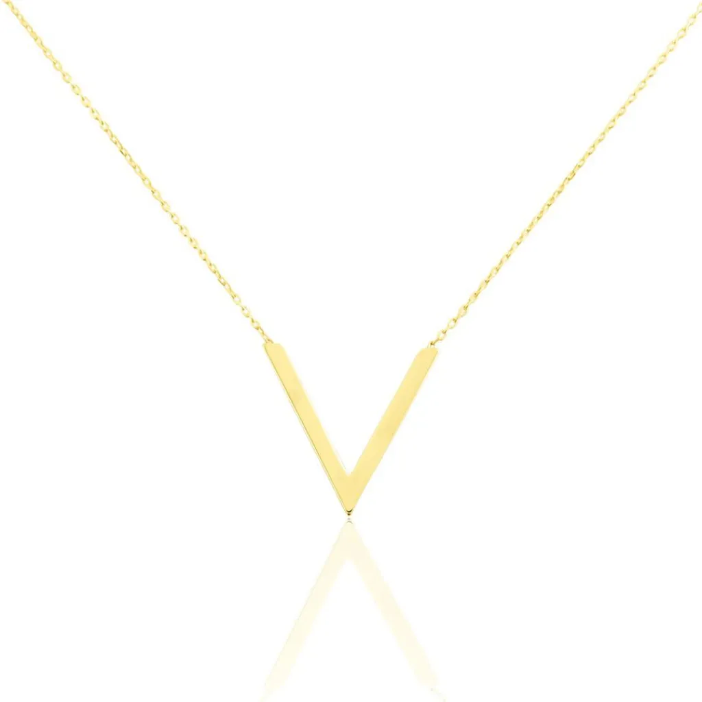 Collier Or Jaune 375/1000 Forme V Gm Maille Forcat 40+2cm