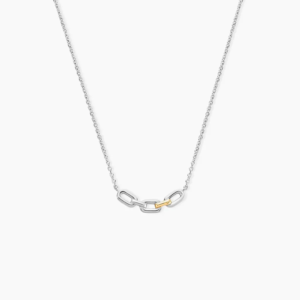 Collier Or Jaune 375/1000 Et Argent Blanc 925/1000 Trio De Maillons Maille Jaseron 42+3Cm