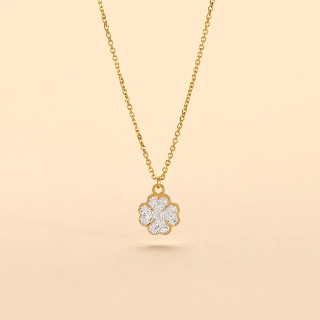 Collier Or Jaune 375/1000 Trefle Glitter Argente Maille Jaseron 40+2cm