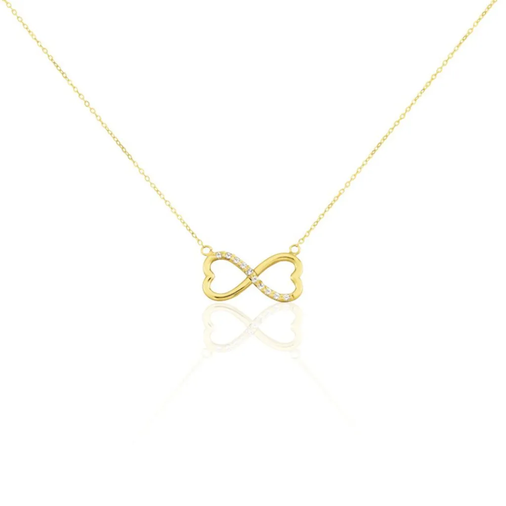 Collier Or Jaune 375/1000 Infini C艙ur Pavage Oxyde De Zirconium Blanc Serti Griffes 40+2 Cm