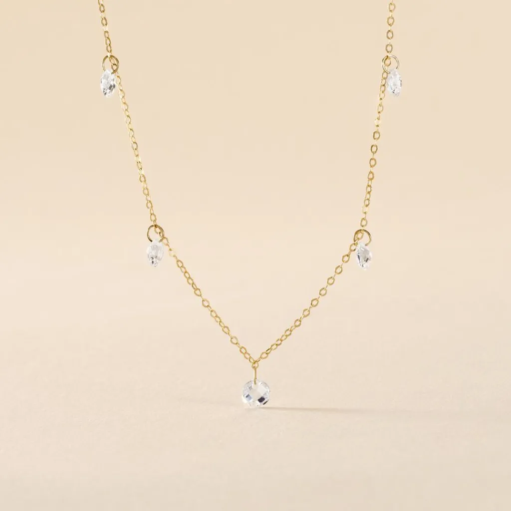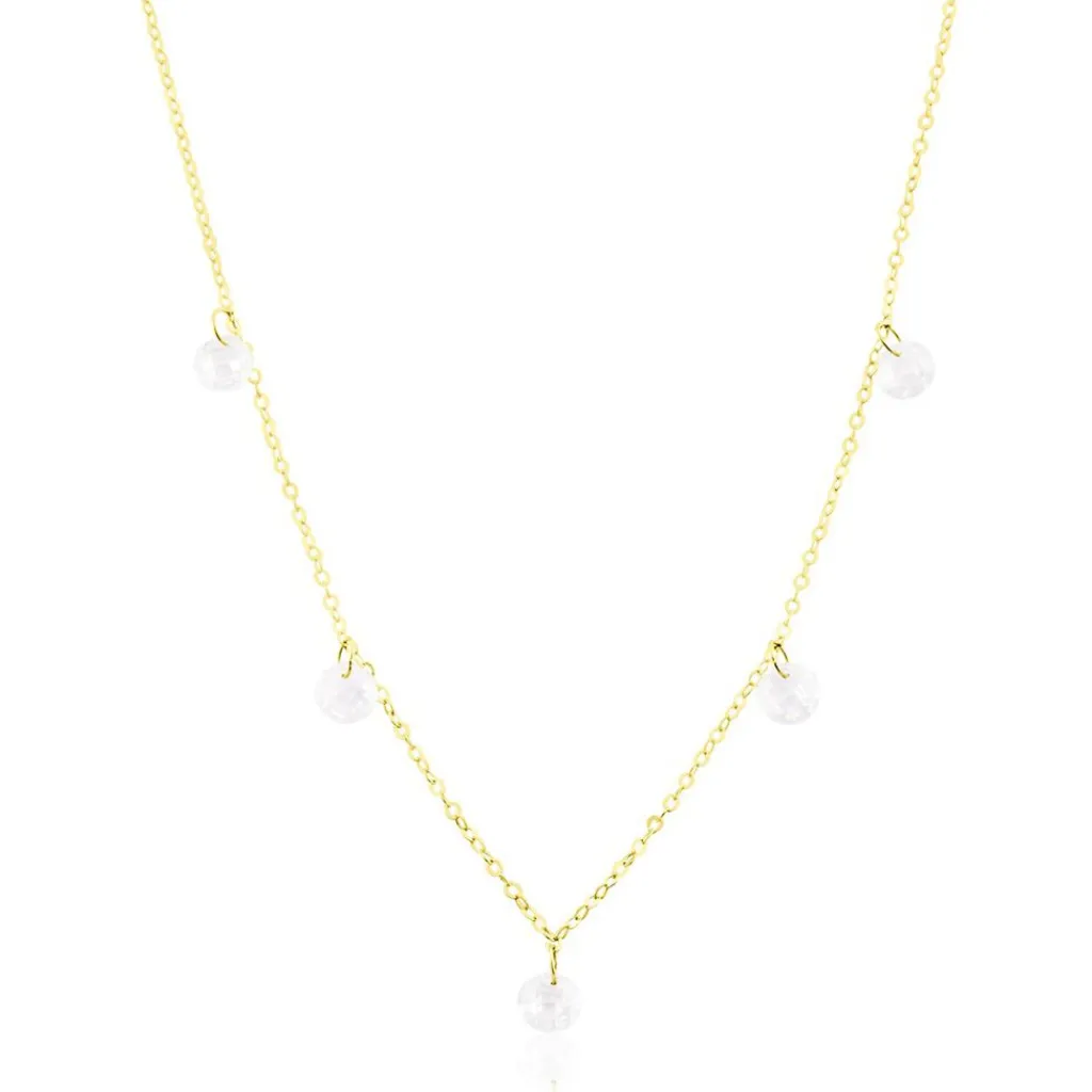 Collier Or Jaune 375/1000 5 Oxydes De Zirconium Perces 40+2 Cm