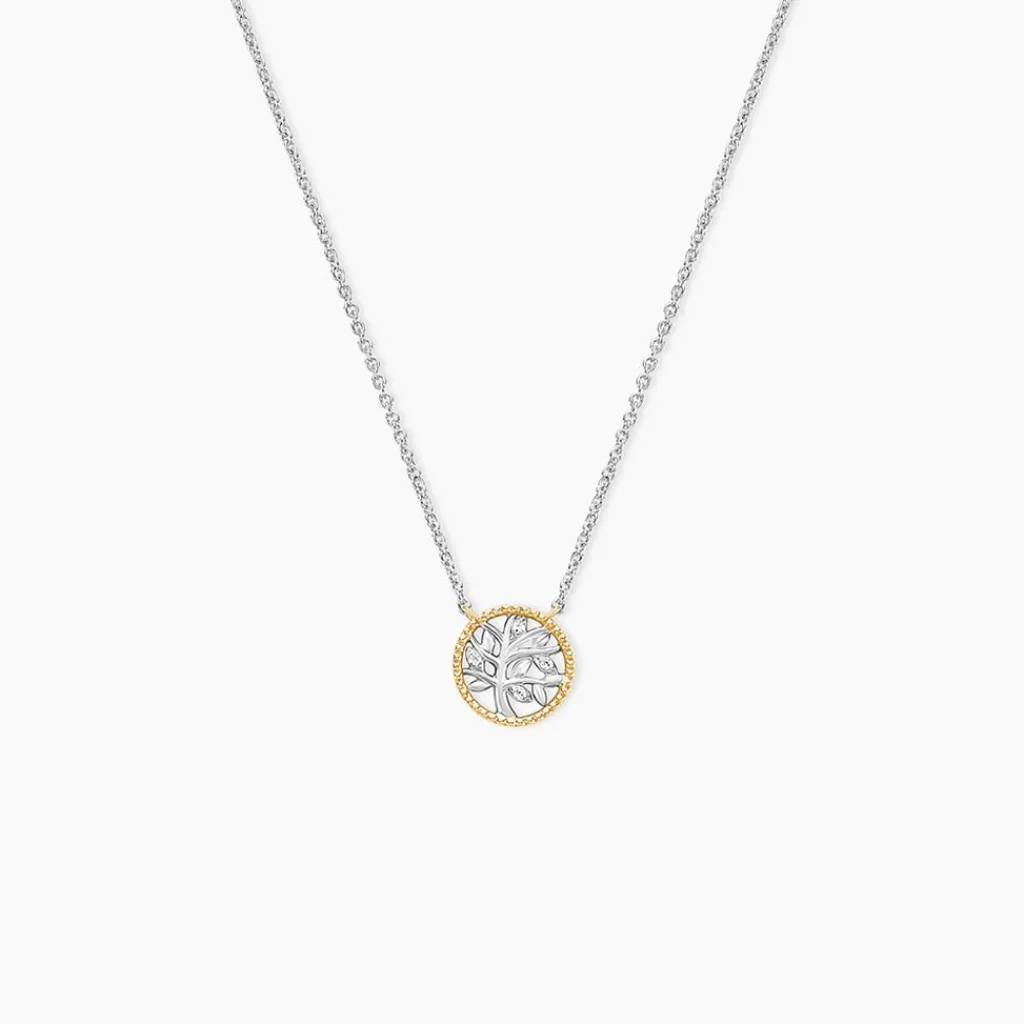 Collier Or Jaune 375/1000 Et Argent Blanc 925/1000 Arbre De Vie Cercle Oxydes De Zirconium Blancs Maille Jaseron 42+3Cm