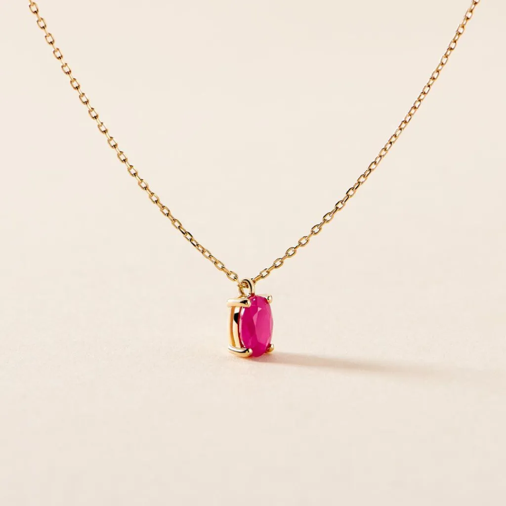 Collier Or Jaune 375/1000 Rubis Ovale Serti 4 Griffes 42cm