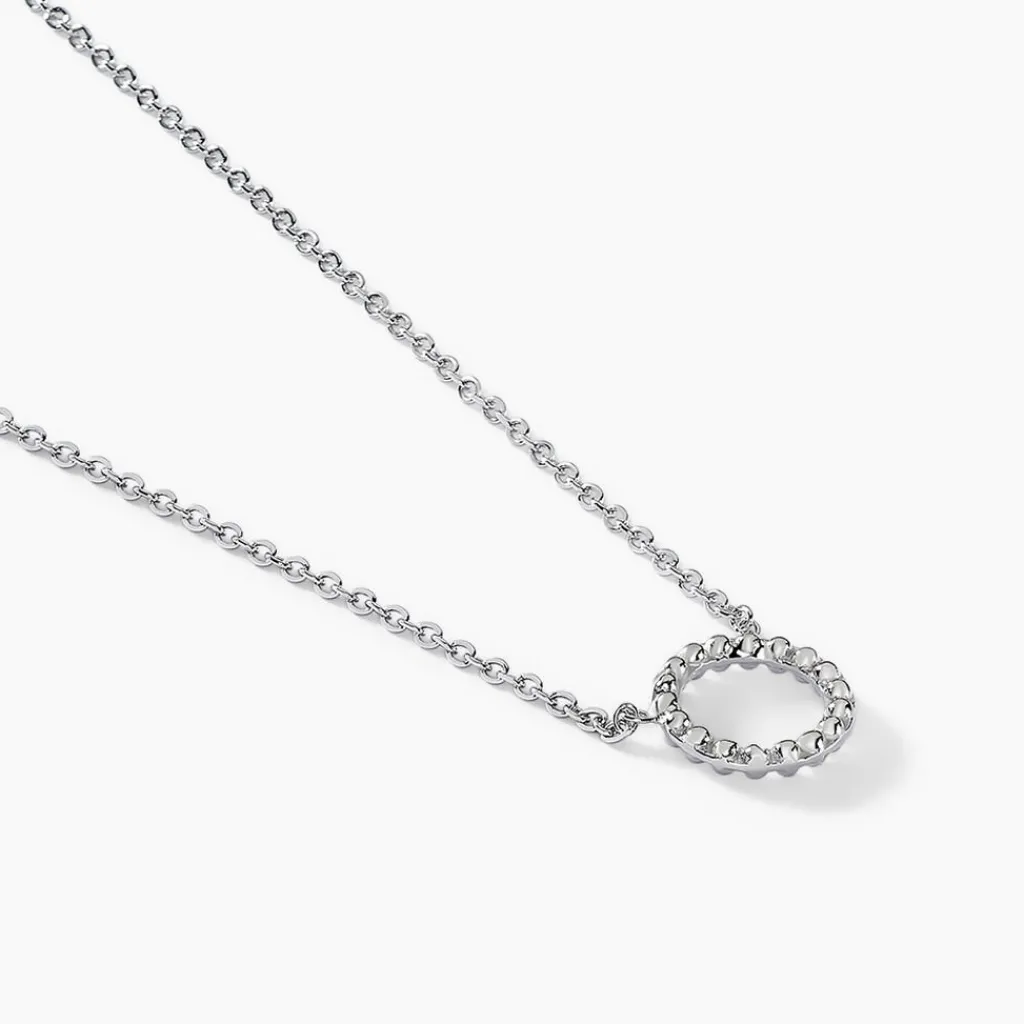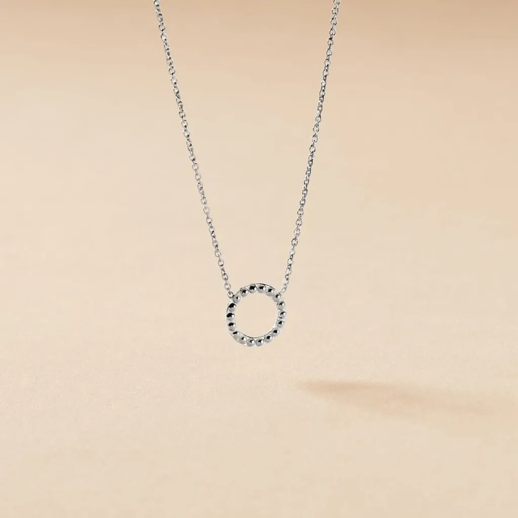 Collier Argent Blanc 925/1000 Cercle Ajoure Effet Perle Maille Forcat 42cm