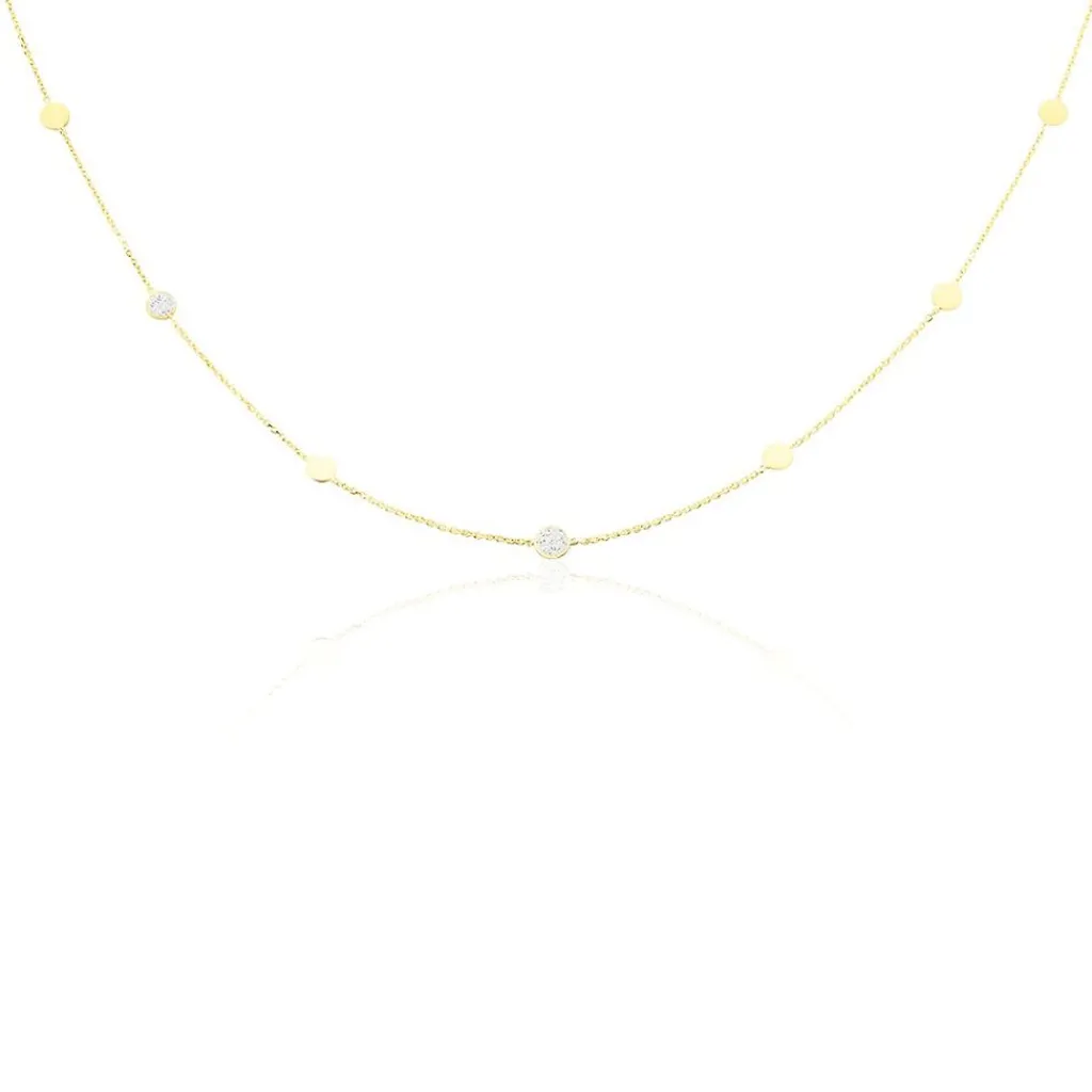 Collier Or Jaune 375/1000 Pastilles Glitter Argentees Maille Jaseron 40+2cm