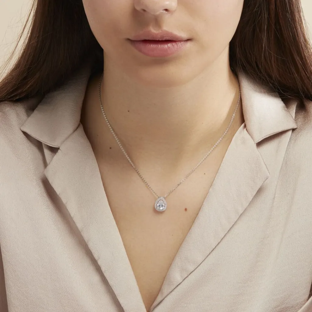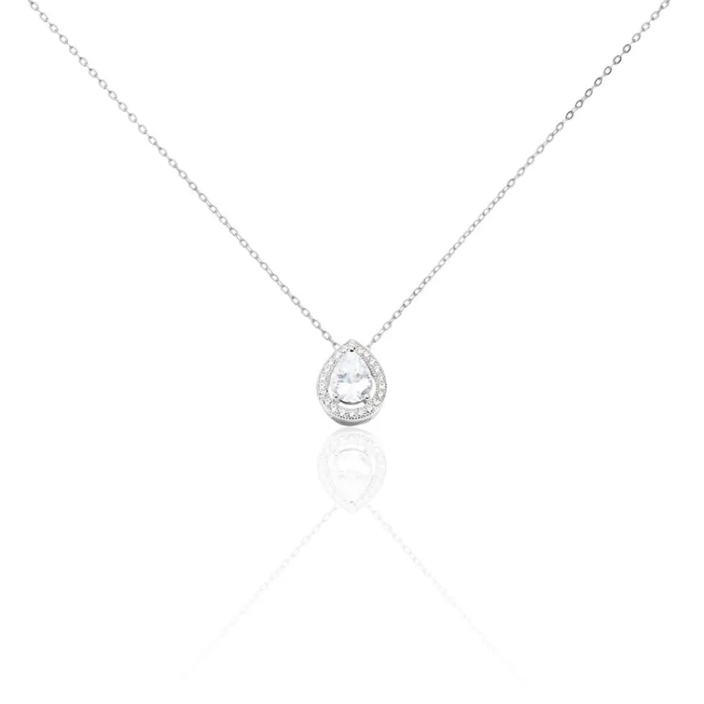 Collier Argent 925/1000 pilar Solitaire Oxyde De Zirconium Central Forme Poire Entourage Oxydes De Zirconium 45cm