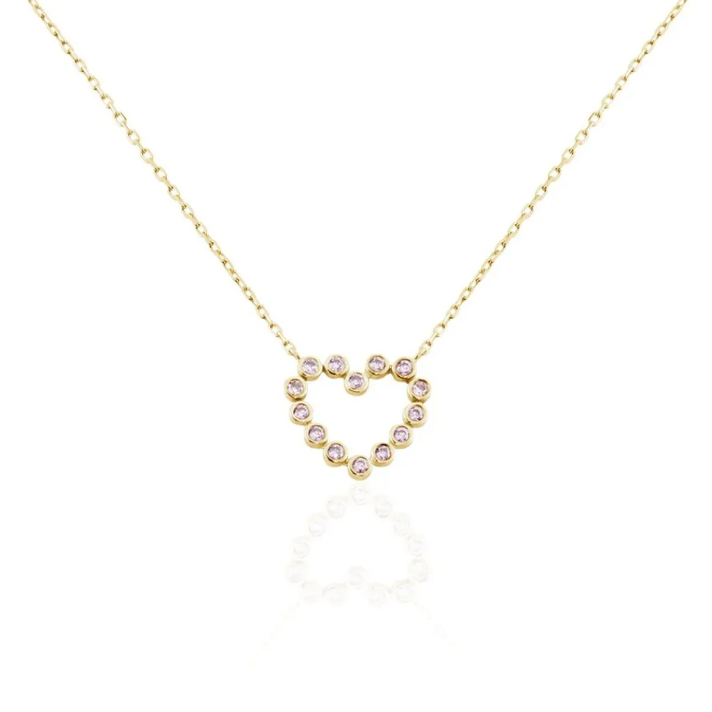 Collier Plaqué Or Jaune C艙ur Ajouré Oxydes De Zirconium Rose Maille Forcat 45cm