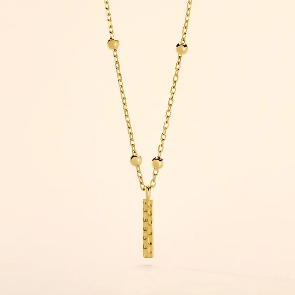 Collier Plaque Or Jaune Lettre I Martelee Et Petites Boules Chaine Maille Forcat Longueur 45cm