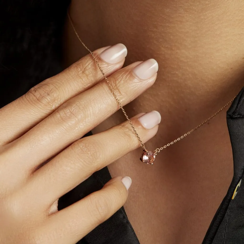 Collier Plaqué Or Jaune Oxyde De Zirconium Rose 6mm 4 Griffes Maille Forçat 45cm