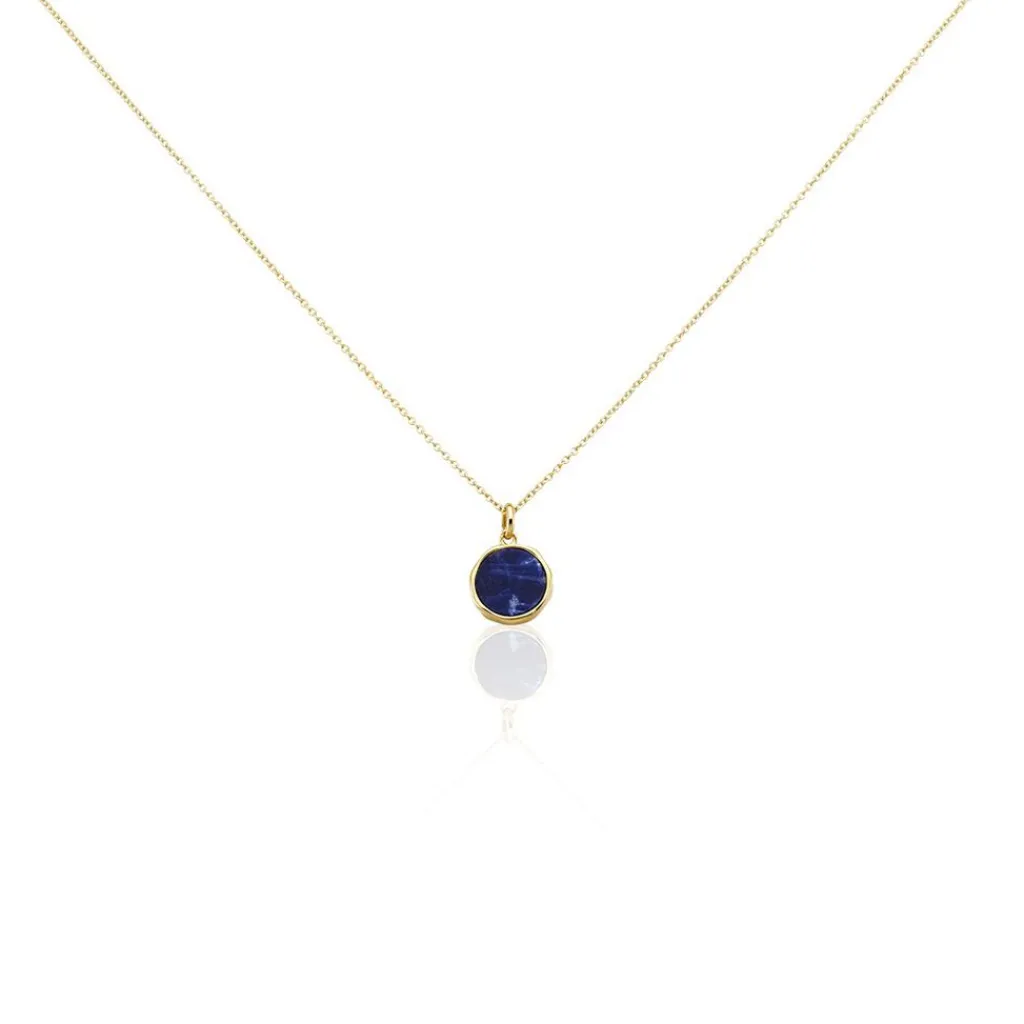 Collier Plaqué Or Pastille Sodalite Bleue Maille Forcat 45cm