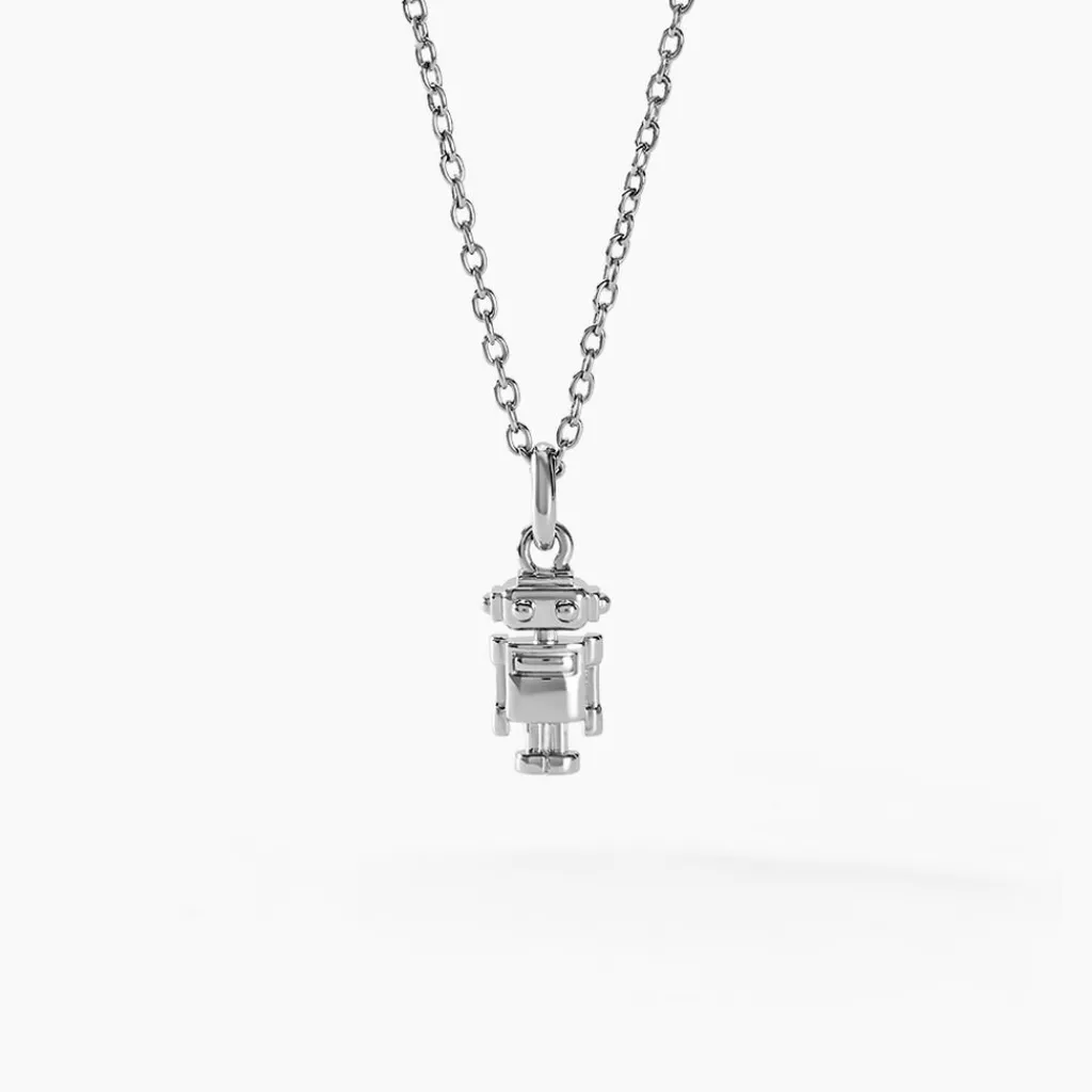 Collier Argent Blanc 925/1000 Robot Maille Jaseron 35+3cm