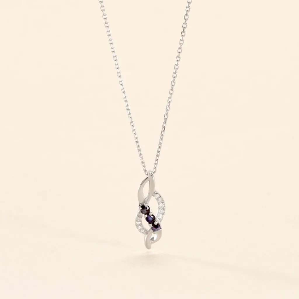 Collier Or Blanc 375/1000 Trilogie Saphirs Et Diamants 42cm