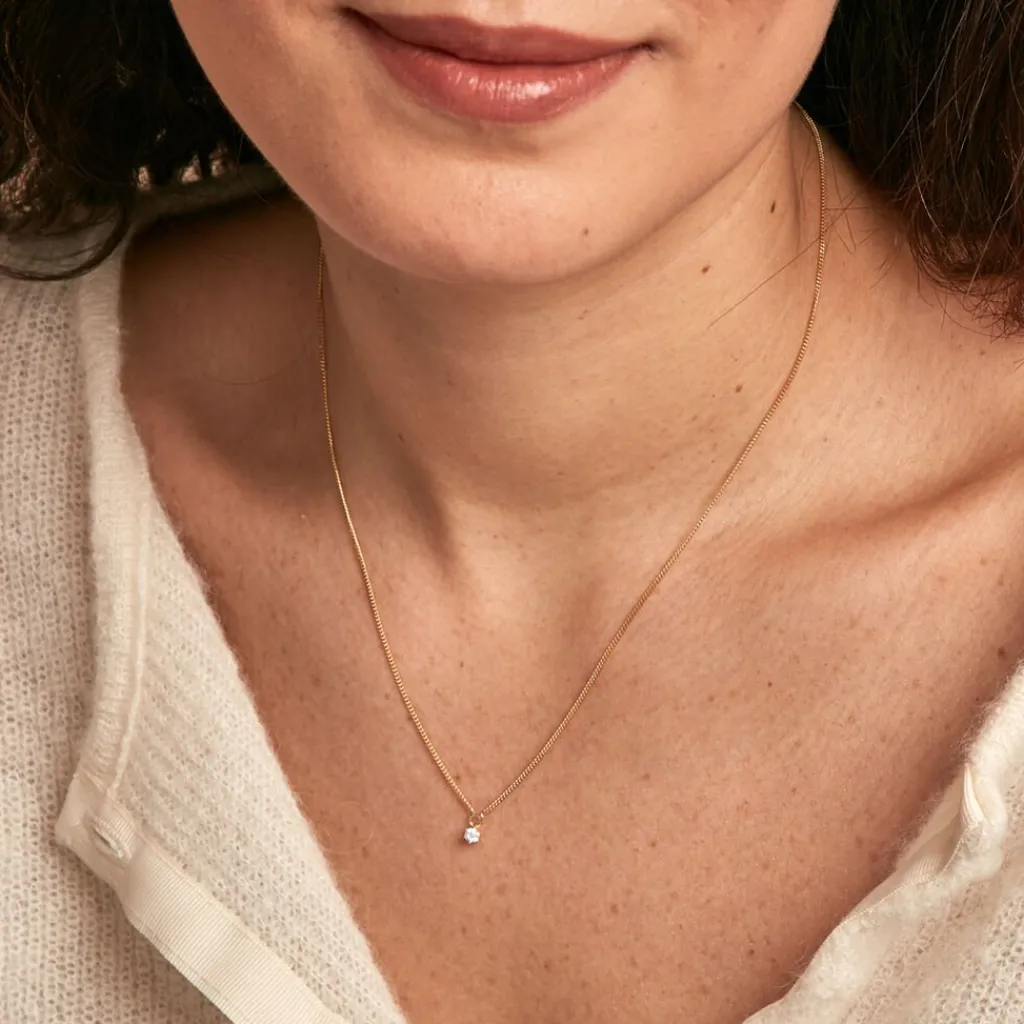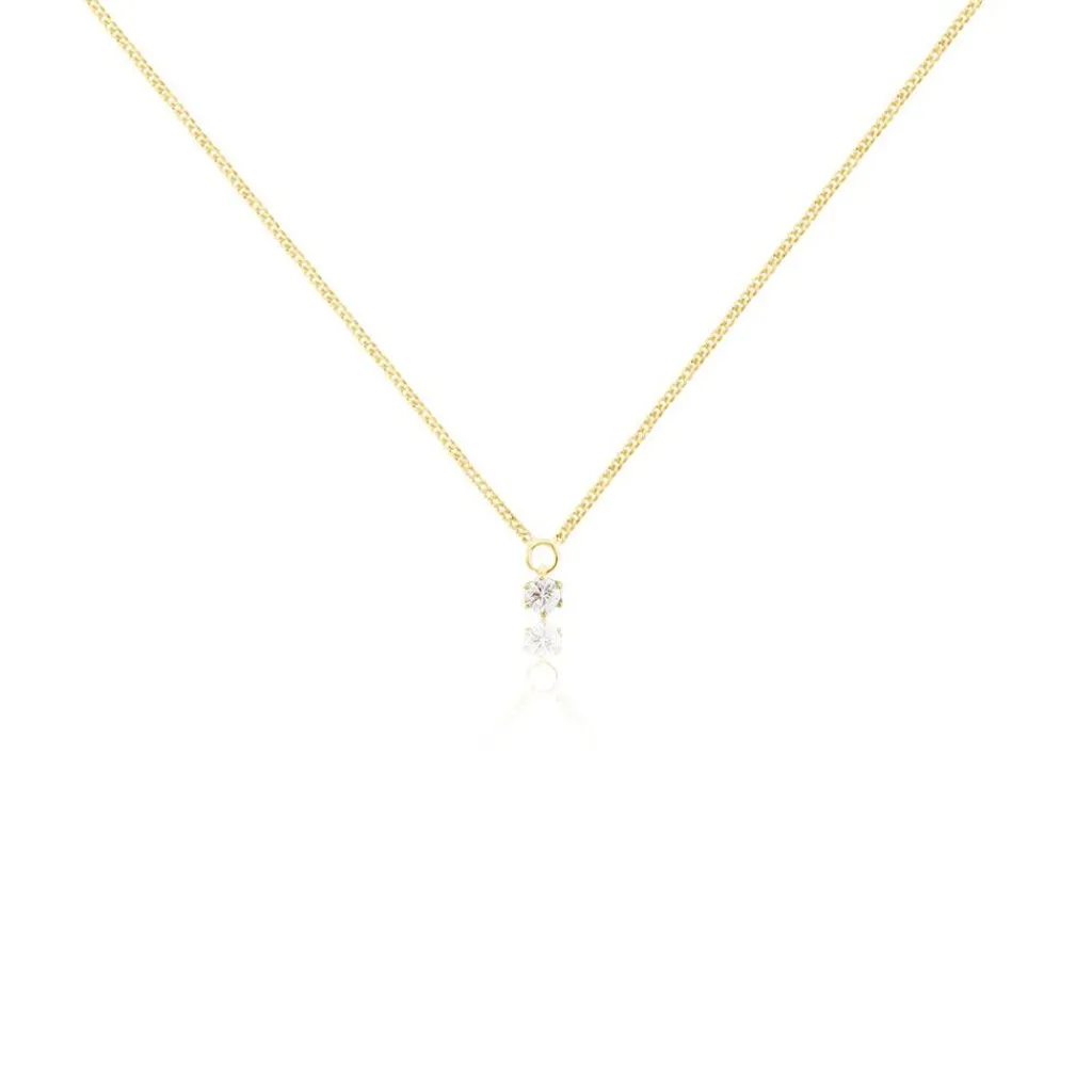 Collier Or Jaune 750/1000 Diamant 0.10cts Maille Gourmette 45cm