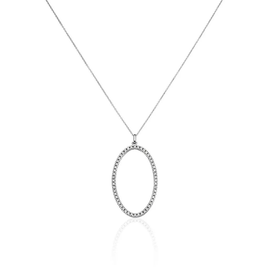 Collier Sautoir Argent 925/1000 Ovale Ajoure Pavage Oxydes De Zirconium Maille Forçat 70cm