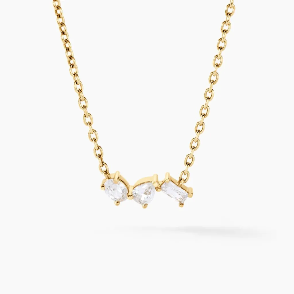 Collier Or Jaune 375/1000 Multipierres Oxyde Zirconium Ovale Poire Et Emeraude Serti 4 Griffes Maille 40+2cm