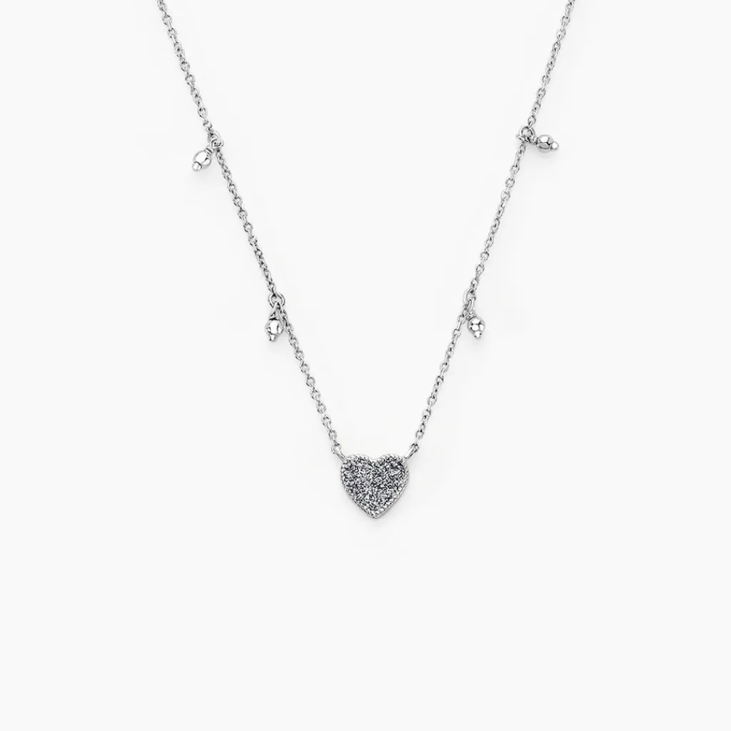 Collier Argent Blanc 925/1000 C艙ur Glitter Et Pampilles Boules Maille Forçat 42+3cm
