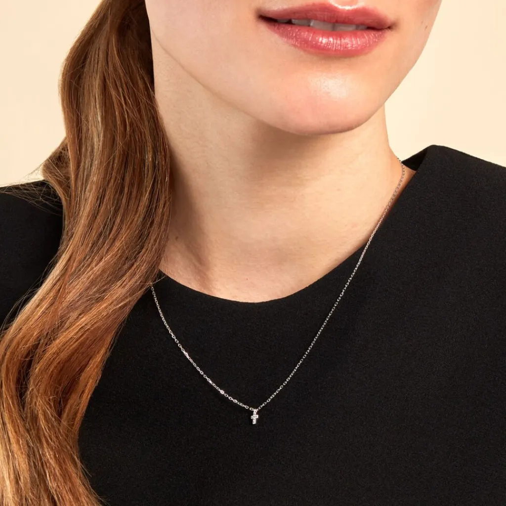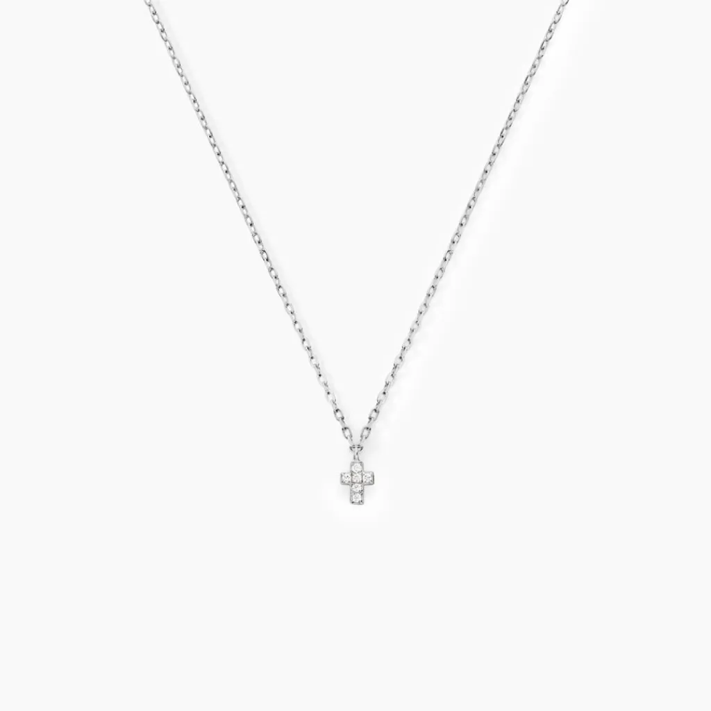 Collier Argent Blanc 925/1000 Croix Oxydes De Zirconium Micro Serti Maille Forçat 42+3cm