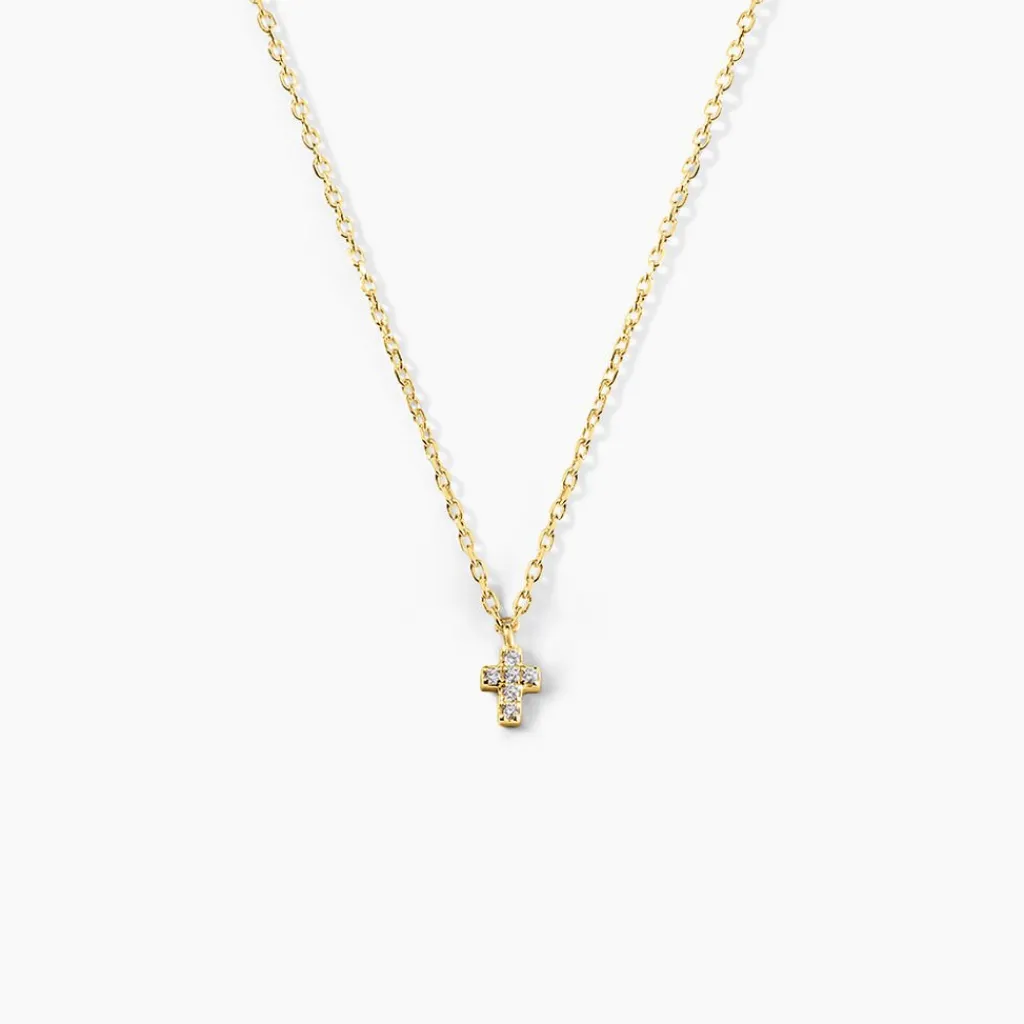 Collier Argent Jaune 925/1000 Croix Oxydes De Zirconium Micro Serti Maille Forçat 42+3cm